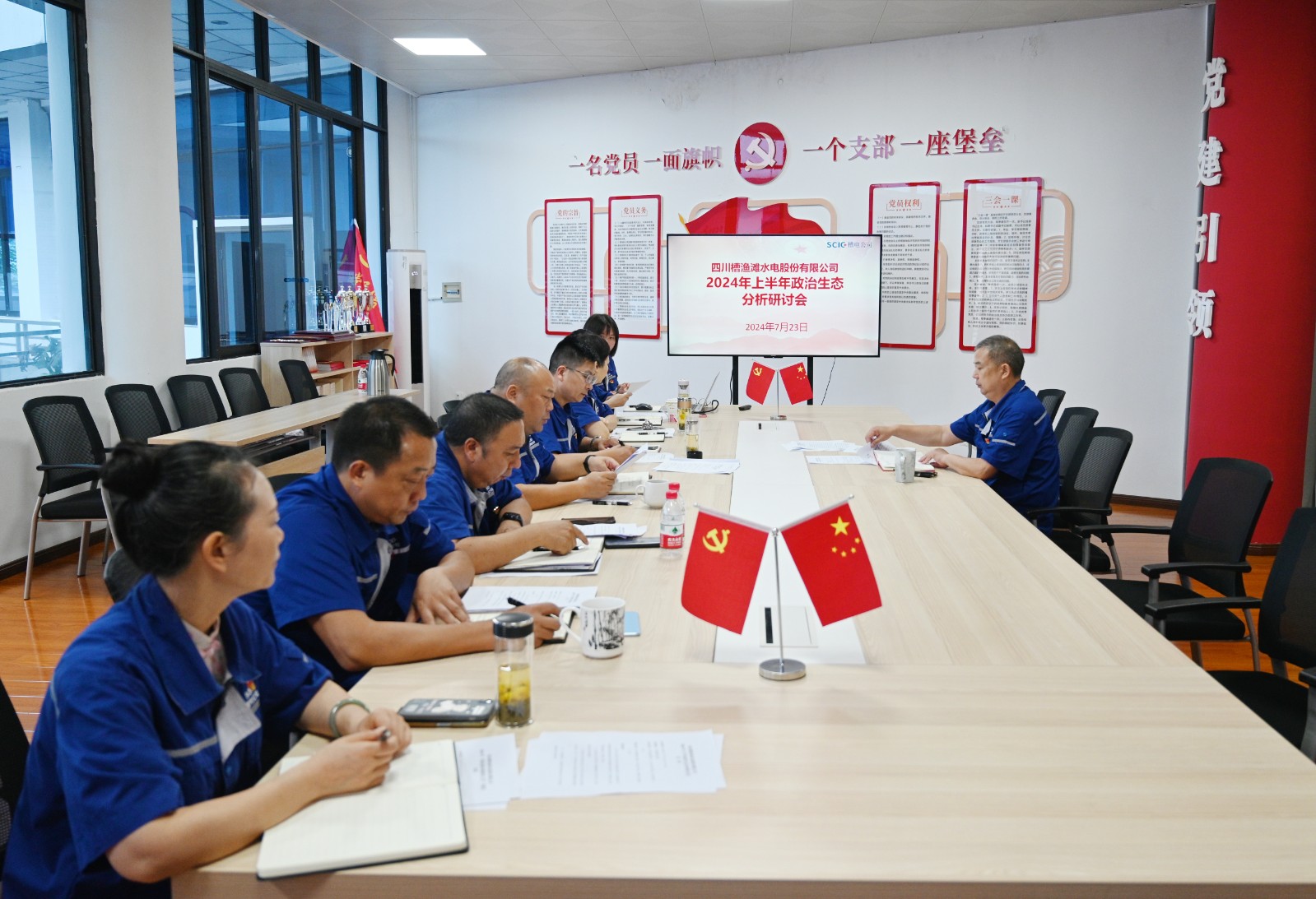 为推动全面从严治党主体责任落实,努力营造风清气正的政治生态,7月23日,槽渔滩公司党委召开2024年上半年政治生态分析研判会,公司党委书记、董事长何光富出席会议并讲话,党委副书记、工会主席陈尧主持,公司领导班子成员,纪检工作部、党群工作部相关人员参加会议。