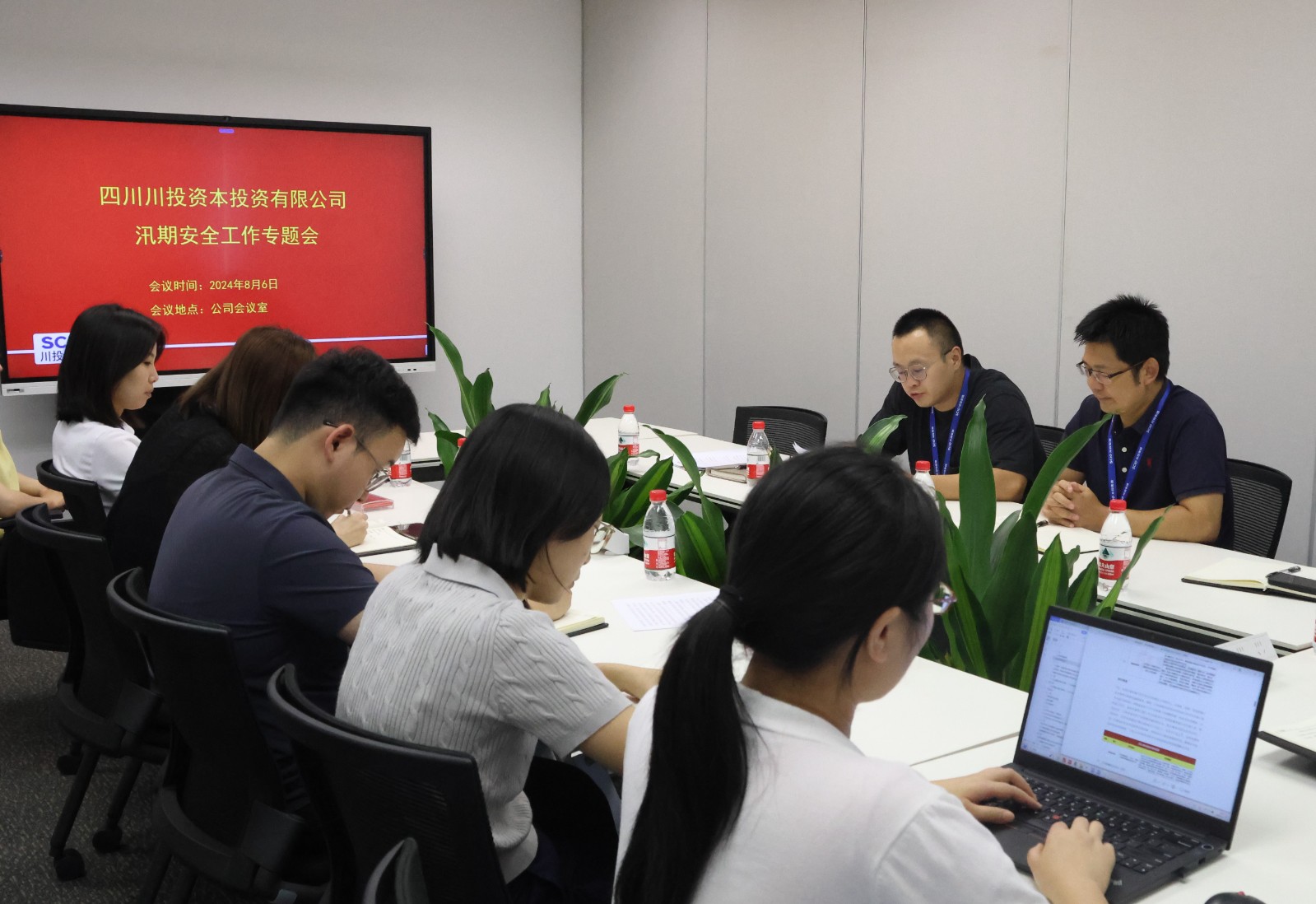 8月6日,川投资本组织召开汛期安全工作专题会议。在岗全体员工参加会议。