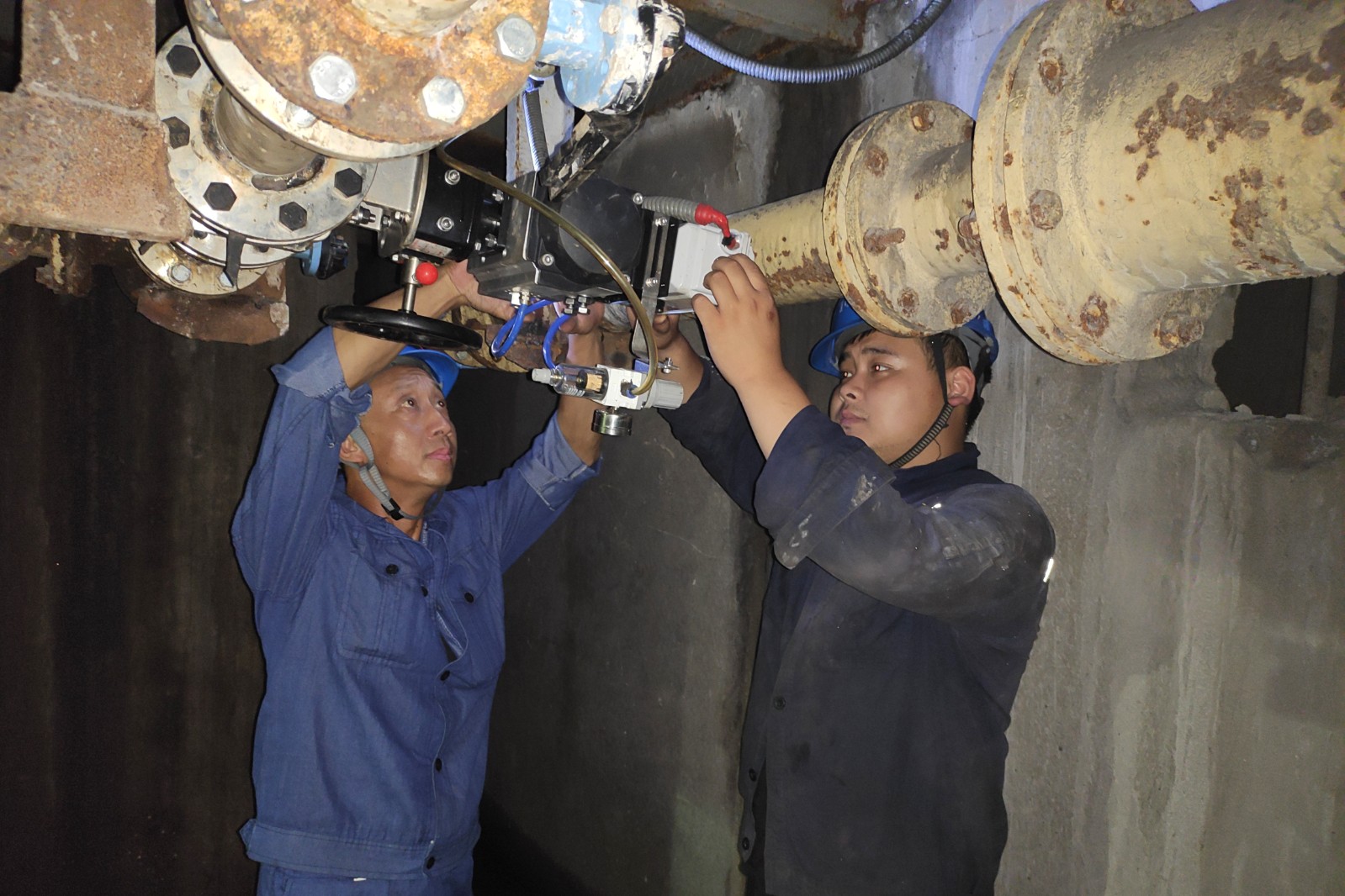 制浆脱水系统起着石灰石浆液制备和吸收塔石膏浆液脱水的作用,该系统设备的可靠与否直接影响机组的安全环保运行。制浆脱水系统由一根根管道组成,在公司上半年双机持续高负荷运行工况下,这些管道早已不堪重负、伤痕累累。近期,公司充分利用低负荷时段,在脱硫除灰值班员和检修人员的通力配合下,逐步对3、4号石膏旋流站管道及滤网箱、C/D磨机的浆液循环、稀释水、研磨水管道、滤液水系统出口管道进行焊补、陶瓷防腐以及管道更换。运行值班员做好隔离安措,加大剩余制浆脱水设备的精细操作和巡检力度,做好浆液不足或脱水设备故障的事故应急处理预案;检修人员争分夺秒,在保证制浆脱水系统安全运行的同时进行精细施工。