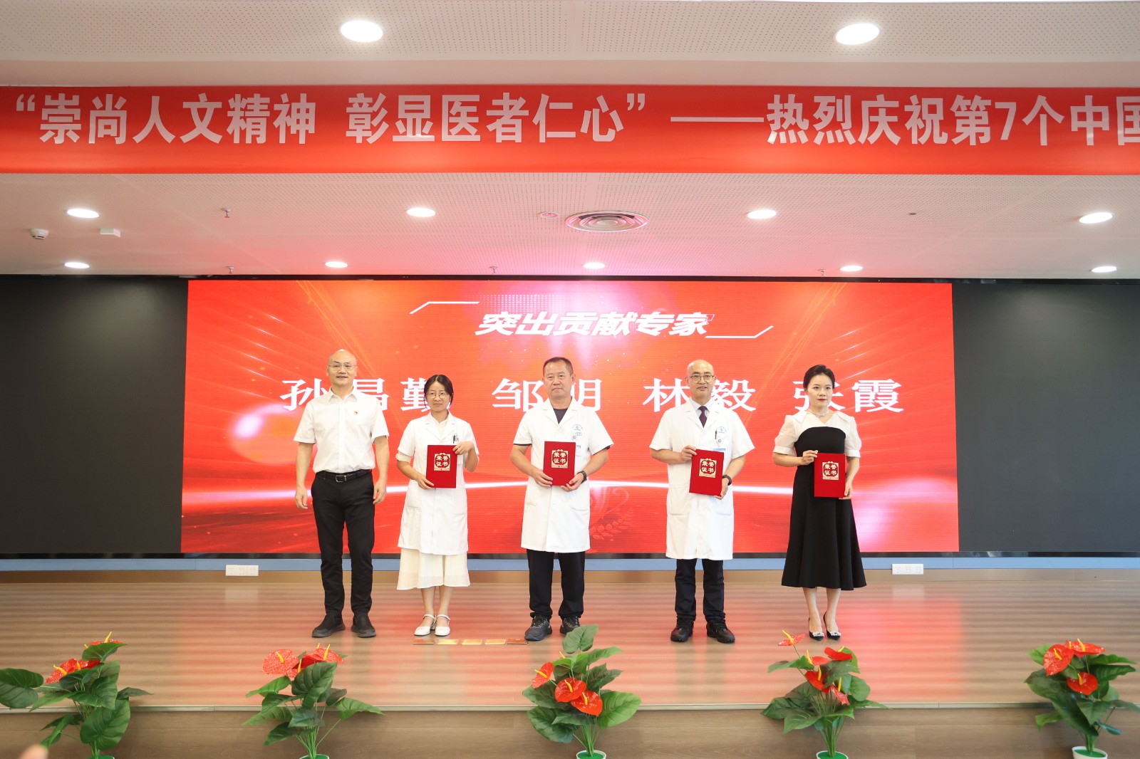颁奖环节,由医院领导班子为在医学领域深耕多年、医术精湛的专家,岗位上兢兢业业的骨干医师,充满活力与潜力的青年医师以及医技服务表现出色的工作者颁奖,分别授予他们优秀突出贡献专家、优秀骨干医师、优秀青年医师、医技服务之星等荣誉称号。这不仅是表彰和树立“优秀”,更是对他们辛勤付出的充分认可。