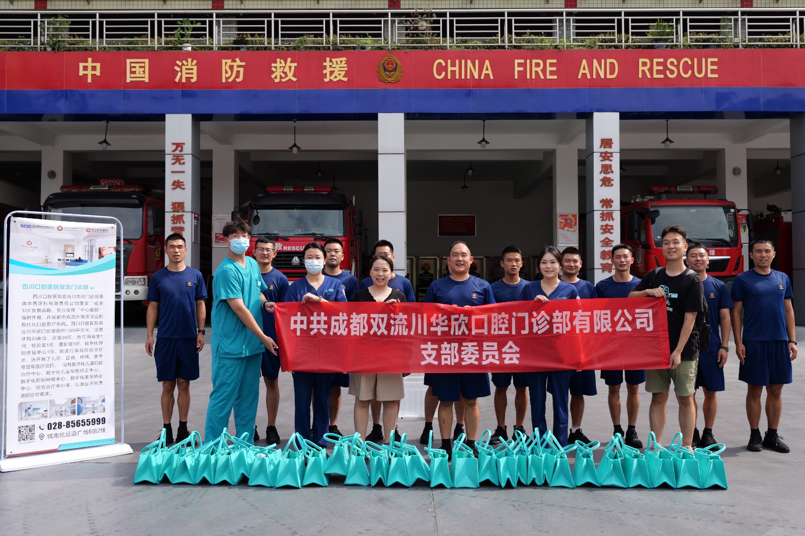 活动最后,双流门诊部为参与活动的消防队员们赠送了精美的口腔健康礼包。礼包内含高品质的牙刷、牙膏、牙线等日常护理用品,旨在帮助队员们更好地维护口腔健康。