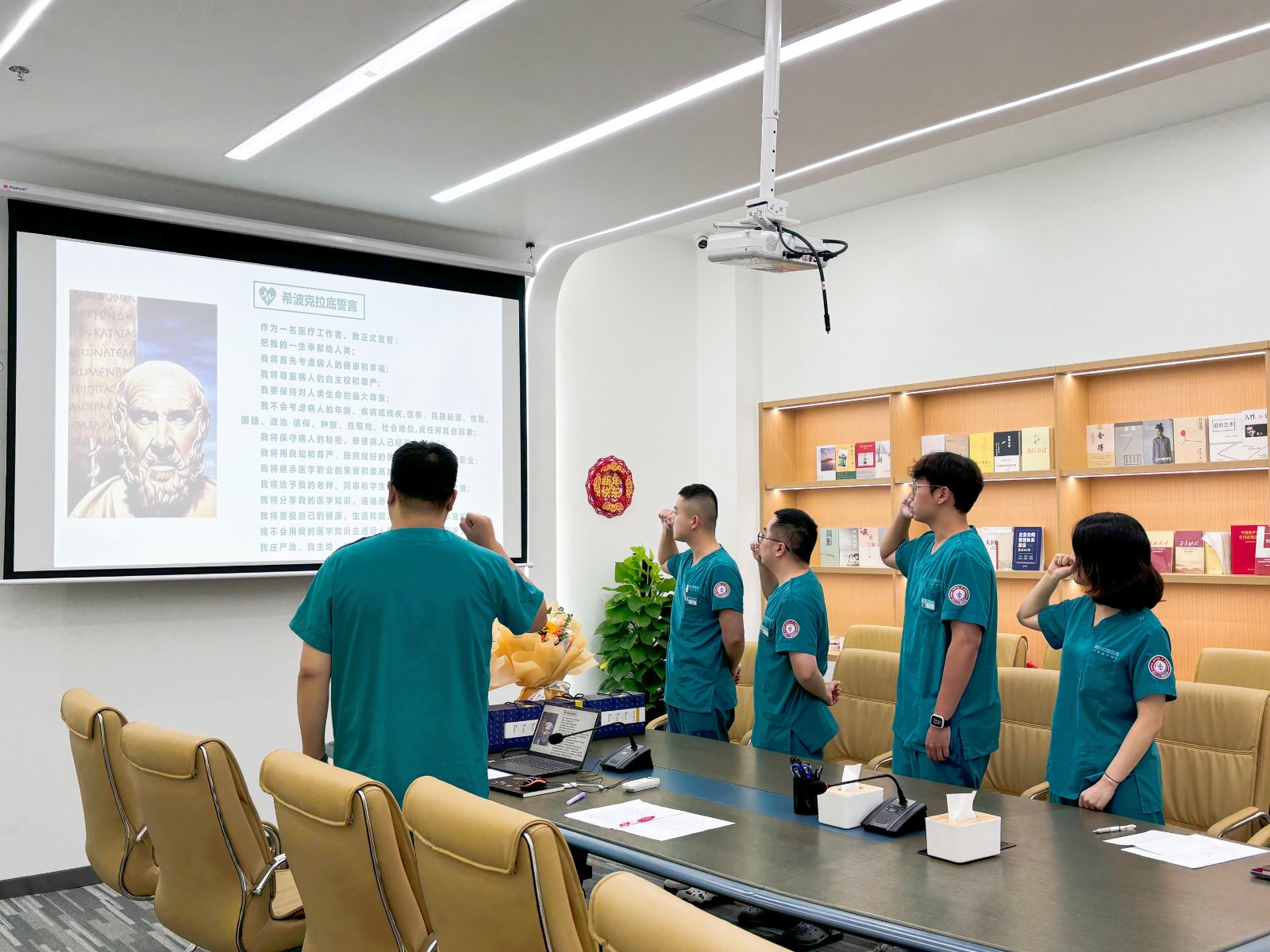 活动伊始,门诊部行政代表向每一位在岗位上默默奉献的医师致以最崇高的敬意和节日的问候。随后,全体医生在庄严的氛围中,齐声诵读了医学界的圣典——希波克拉底誓言。誓言中的每一句都掷地有声,不仅是对医德的承诺,更是对医者责任与使命的坚守。
