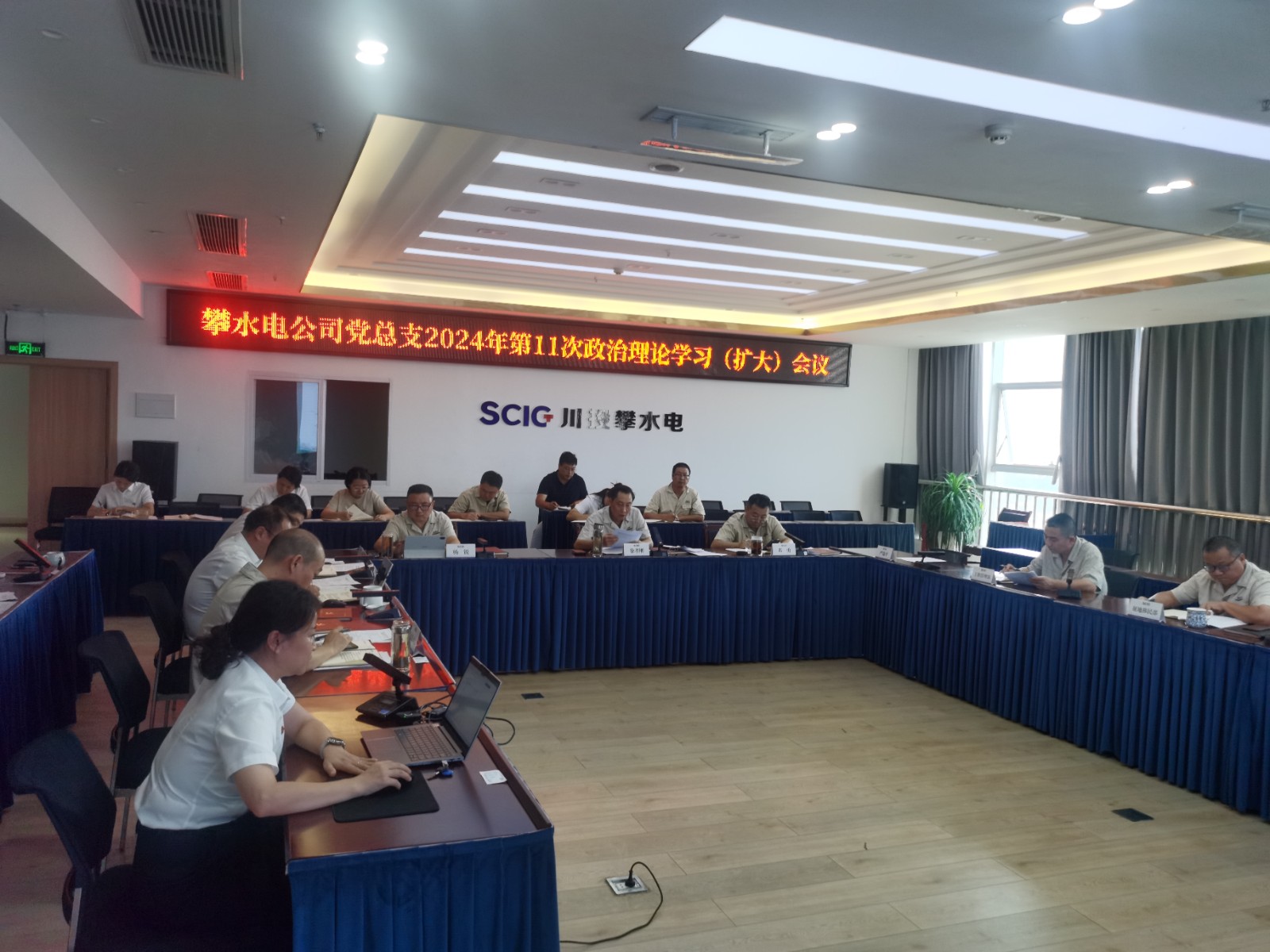 8月28日下午,川投能源所属攀水电党总支召开了2024年第11次政治理论学习(扩大)会议,川投能源副总经理、攀水电公司党总支书记、董事长徐孝刚主持会议,公司党总支政治理论学习会成员、全体中干、支部书记、其他党员、统战对象、入党积极分子共计30余人参加学习。