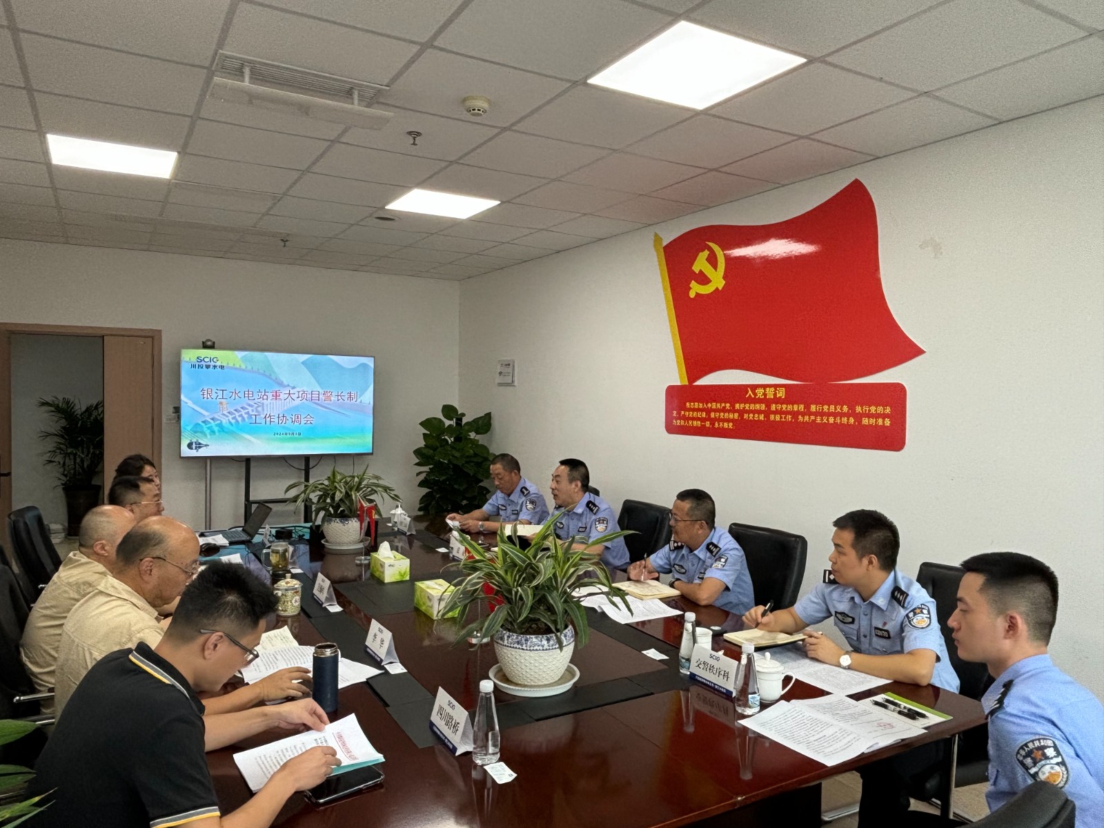 与会人员一致认为,警企双方要进一步坚持党建引领,发挥“重点建设项目警长制”作用,建立协作机制。会议决定,一是定期召开协调会、联席会,加强沟通协调、互通情况,及时为银江项目解决所属范围内的困难问题,全力确保银江水电站项目安全顺利竣工投产,为助力攀枝花市高质量发展建设共同富裕试验区作出积极贡献;二是积极组织警企共建活动,通过党员队伍教育管理,采用联合开展党课、红色教育、主题党日等方式,持续提升警企双方队伍建设水平,培养打造“项目警长护平安、警企共建促发展”的党建品牌。