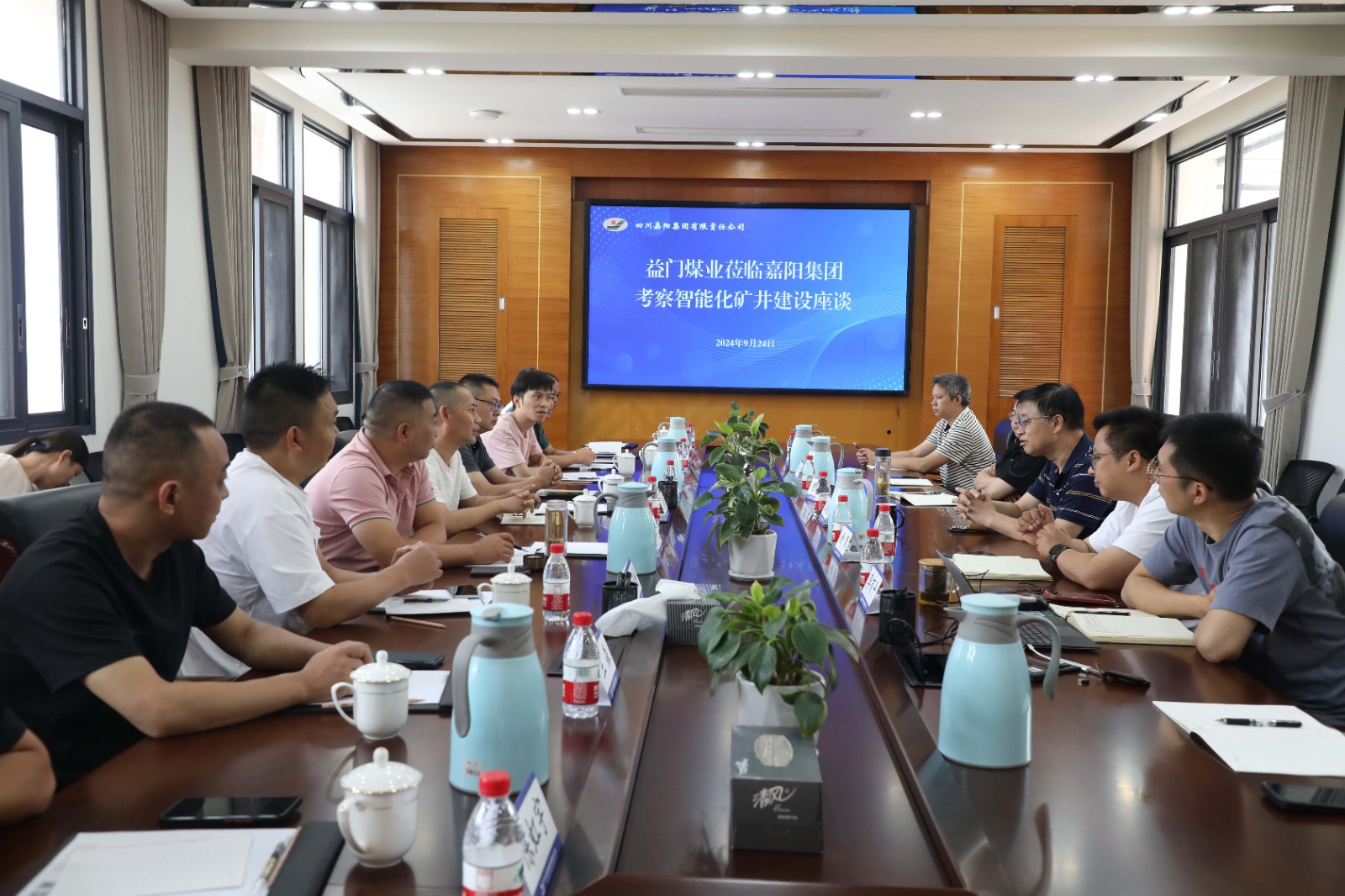 9月24日,益门煤业总工程师文有权一行到嘉阳集团考察学习智能化矿井建设。嘉阳集团副总经理、总工程师袁成金陪同考察。
