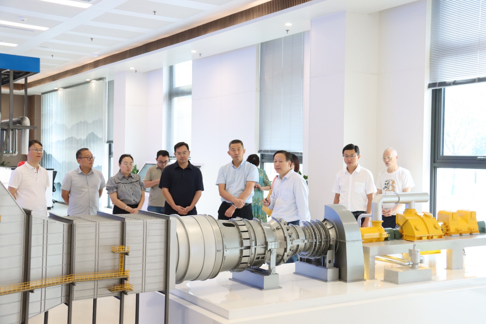 在一楼展示厅,调研组通过观看视频、听取讲解的形式了解资阳燃气电站项目基本概况、投资规模、建设历程、投产效益以及燃气发电机组特性、优势等方面情况;在智慧管控中心,调研组通过实地考察、现场交流的方式了解了资阳燃气电站1号机组和2号机组运行情况。