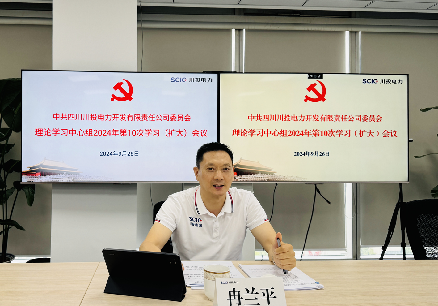 为进一步提高党委理论学习中心组学习的质量和水平,9月26日下午,川投能源党委副书记、工会主席冉兰平列席旁听川投电力党委理论学习中心组2024年第10次集体学习(扩大)会议。受川投电力党委书记、董事长杨涛委托,公司党委副书记、总经理蔡承德主持会议。