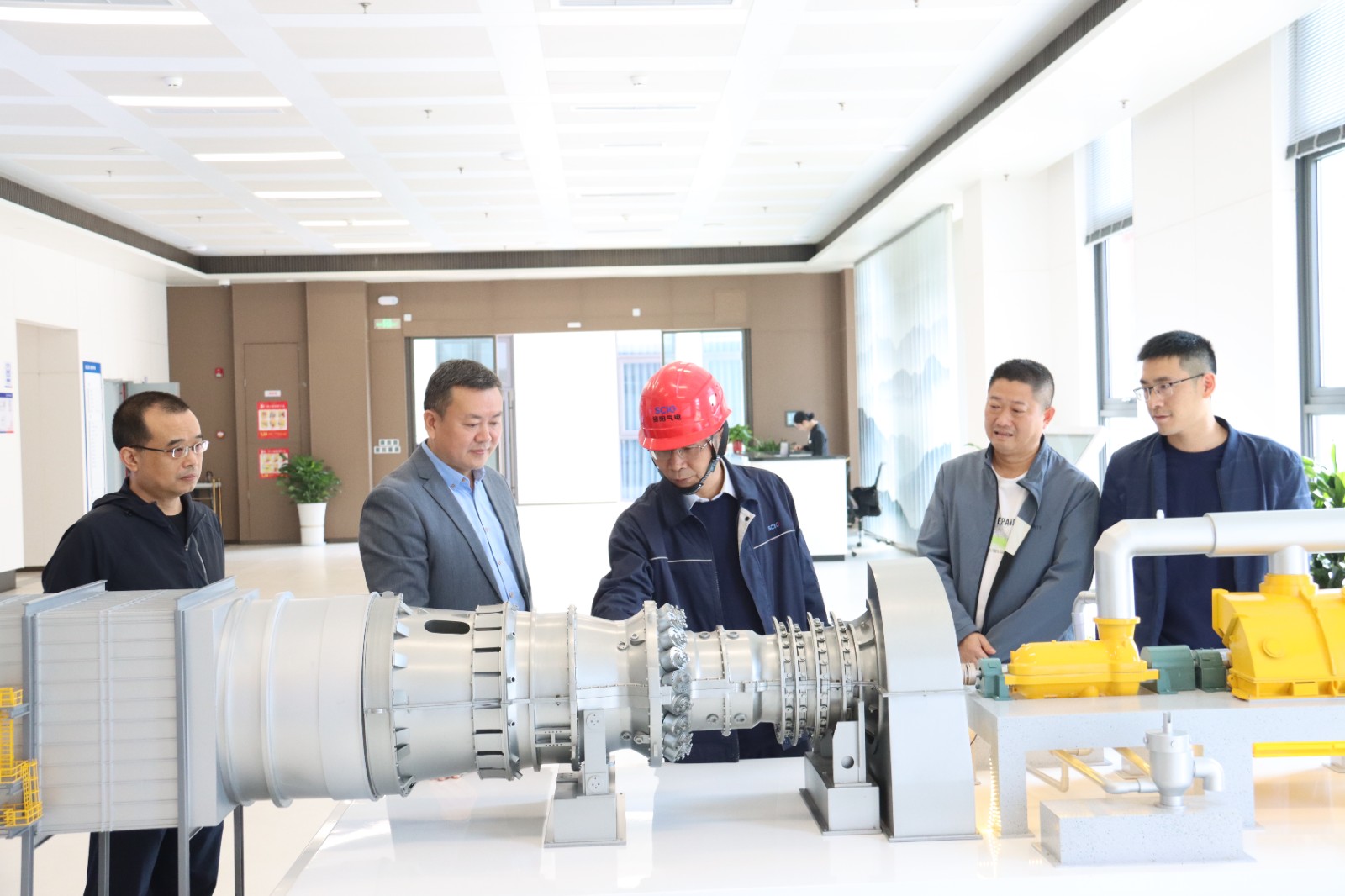 向飞一行先后参观了办公楼、主厂房、智慧管控中心,深入了解资阳燃气电站装机容量、机组特性、技术优势、生产经营以及经济效益、社会效益等方面情况,并通过现场交流的方式询问企业在生产经营过程中的难点问题。