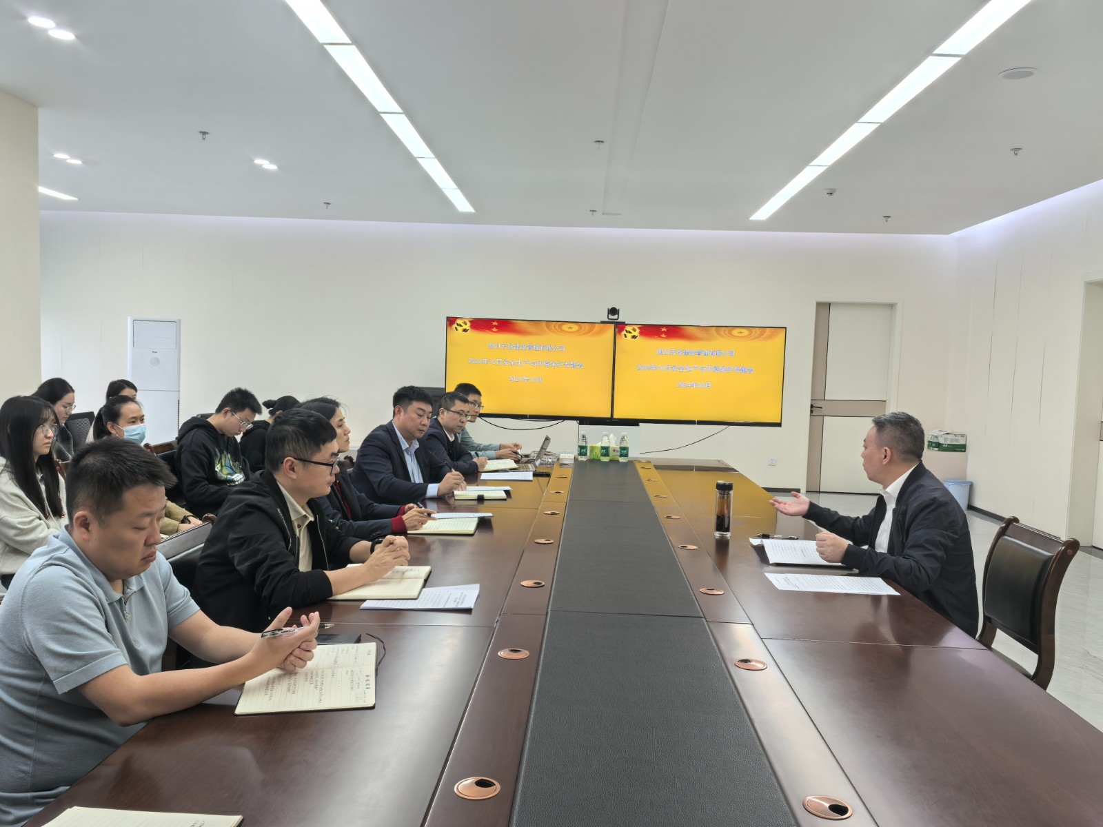 10月24日,牙谷公司组织召开10月安全生产专题会,公司党支部书记、董事长、总经理王冲主持会议,公司全体人员,物业单位、施工单位及维保单位相关负责人参加会议。