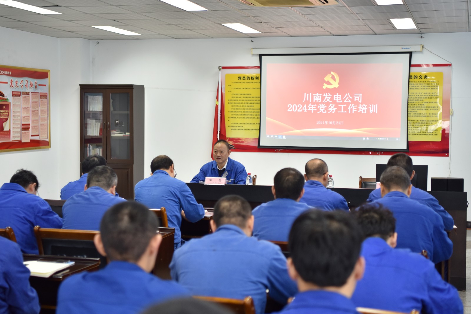 为进一步提升党员干部政治理论水平,提高党务工作人员履职能力,推动公司党建工作取得新突破,10月24日,川南发电开展2024年党务工作人员培训。川南发电公司党委副书记、工会主席黄松主持会议并讲话,党务工作人员、党员代表及优秀团员青年代表共40余人参加学习。