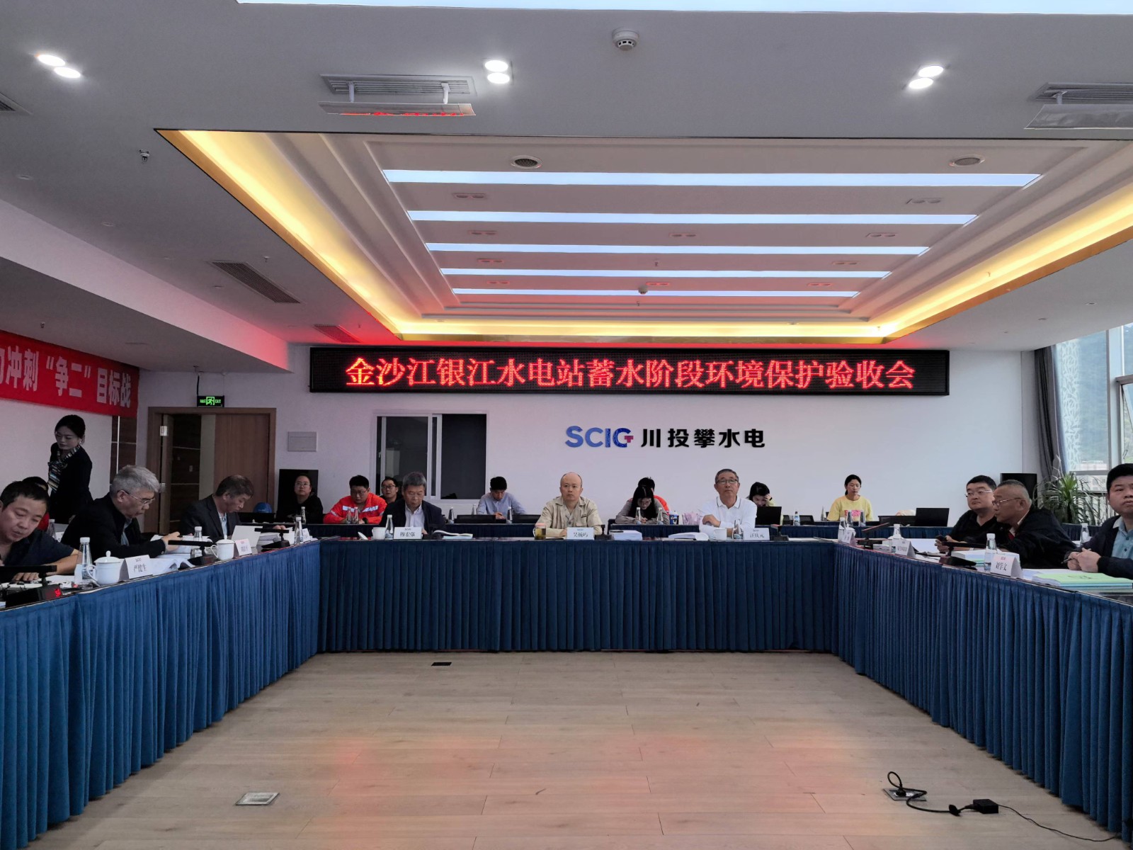 随后,在攀水电公司会议室召开了金沙江银江水电站蓄水阶段环境保护验收会议。会议期间,验收组查阅了各单位环境保护相关资料,并听取了建设单位环境保护工作执行情况、调查单位环境保护阶段验收调查报告,以及设计、环境监理、环境监测、环评、施工等单位环保工作报告,经特邀专家及其他验收成员认真讨论,最终形成了《金沙江银江水电站蓄水阶段环境保护验收意见》。验收组认为:金沙江银江水电站在设计和建设过程中,环境保护工作各项手续齐全,按照环境保护“三同时”要求履行环境管理责任,落实了环境影响报告书及其批复文件提出的蓄水阶段环境保护措施和要求,后续生态环境保护工作计划合理,符合蓄水阶段环境保护验收条件。验收组一致同意通过金沙江银江水电站蓄水阶段环境保护验收。
