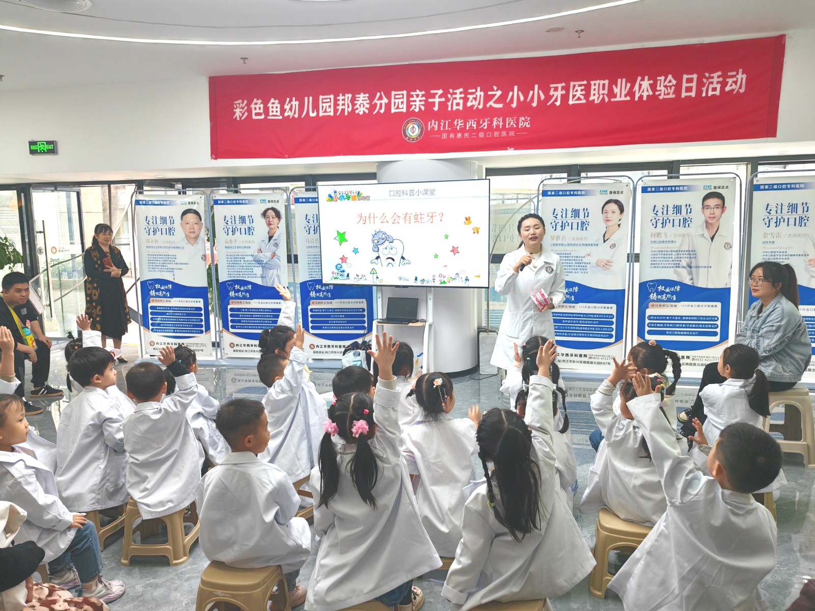 为深入推进“三减三健”健康口腔行动,降低儿童龋患率,10月28日,内江华西牙科医院走进幼儿园举办“小小牙医职业体验日”活动。旨在通过寓教于乐的方式,增强小朋友对口腔健康的认识,培养良好的口腔卫生习惯。