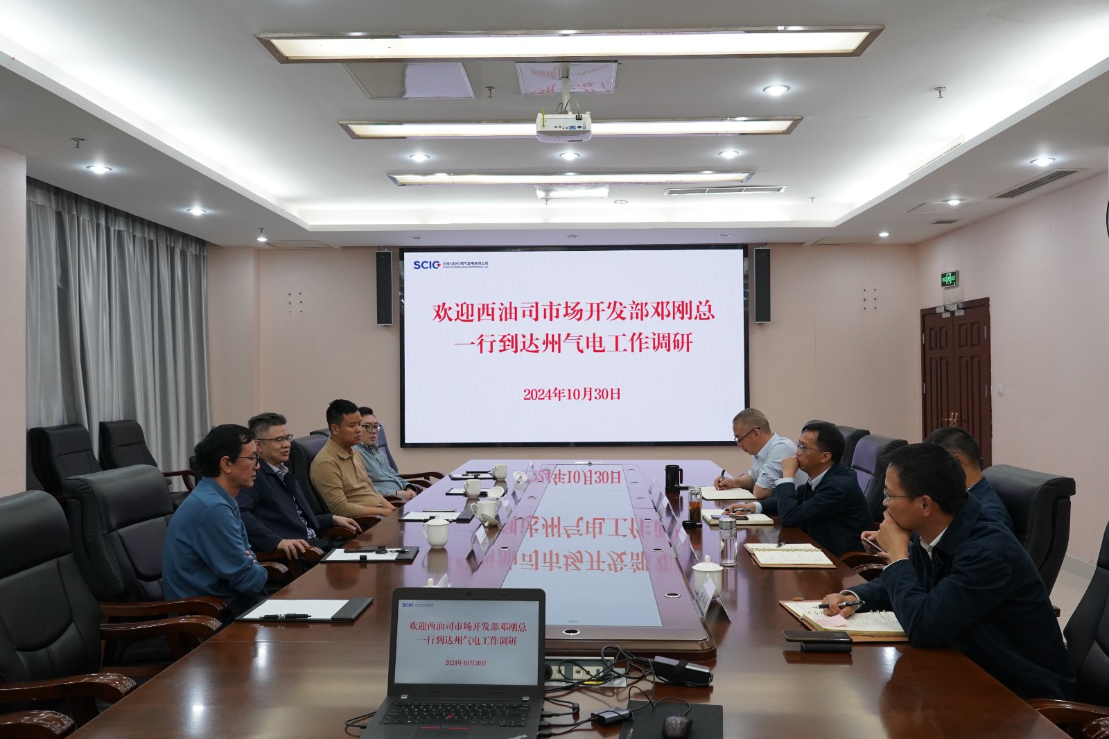 10月30日,中石油西南油气田分公司市场开发部副主任邓刚率队到达州气电调研二期项目建设、用气需求等情况。达州气电党总支书记、总经理蔡宏,党总支委员、副总经理管立陪同并参加座谈。