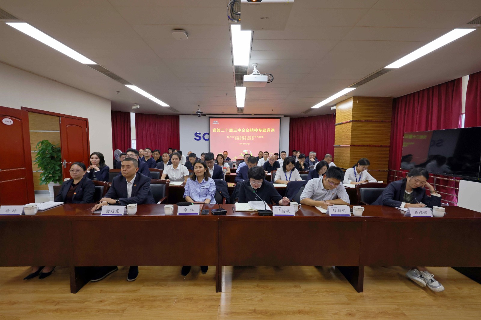 本次活动由田湾河公司党委书记、董事长李红和川投资本公司党支部书记、董事长、总经理王静轶共同主持,田湾河公司和川投资本公司党员合计80余人参加了党课。会议号召全体与会人员共同做好学习党的二十届三中全会与省委十二届六次全会精神的结合,做好推动企业全面深化改革与学习党的二十届三中全会精神的结合,做好落实集团公司“十四五”规划与推动集团高质量发展的结合等“三个结合”,以“干在实处、走在前列”决心共同奋战四季度,为年度各项生产经营目标共同冲刺。