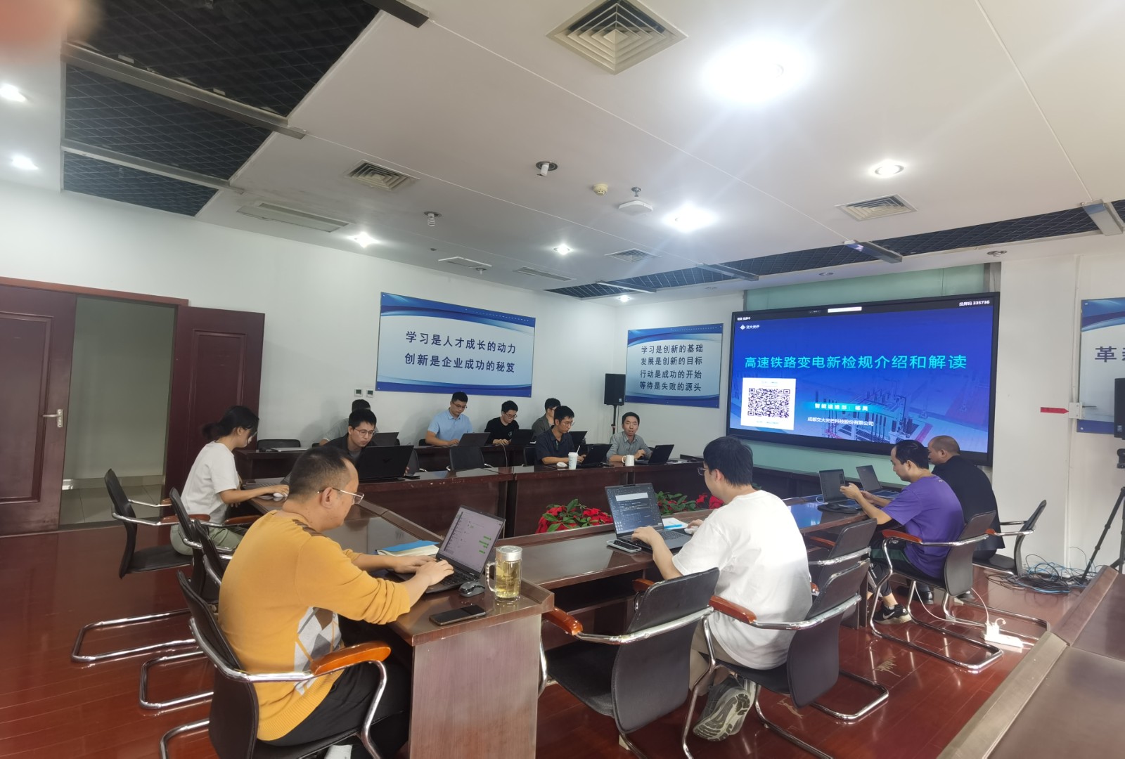 为紧贴智改数转,立足科技赋能,因地制宜发展新质生产力,落实公司“优化产品与需求的融合”要求,不断优化高铁供电智能运维系列产品功能和用户体验,近日,川投能源交大光芒研发中心举办技术沙龙,深入研讨国铁集团新修订的《高速铁路牵引变电所运行检修规则》(新检规)。本次沙龙由研发中心总经理助理杨昊主讲,相关产品经理、需求分析师、开发人员参加。