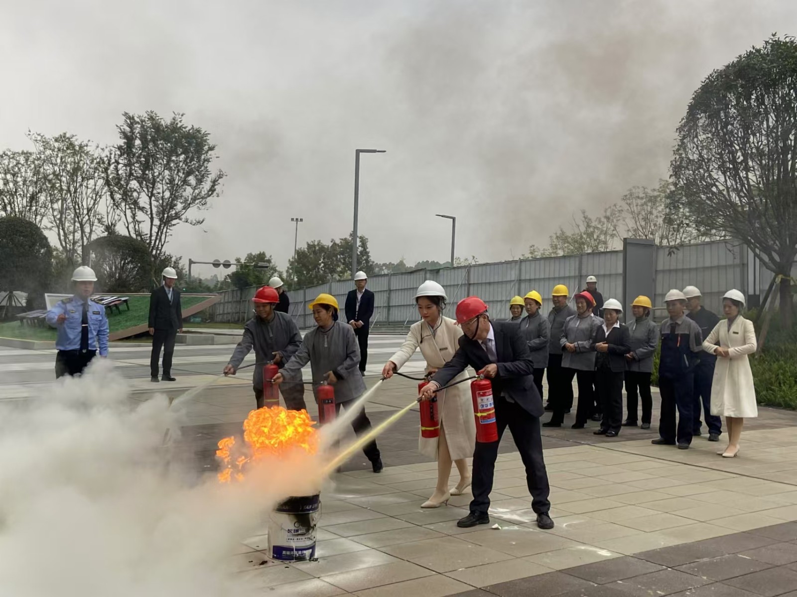 在川投天府中心,消防大队教官进行现场教学指导,教官通过火灾事故案例,带大家了解了基本消防知识,对诱发火灾的原因、特点、危害性、日常防火注意事项、如何正确报火警、初期火灾扑救、如何快速疏散逃生,以及常用消防器材的使用等一系列防火灭火安全知识进行详细讲解。随后,组织参训人员来到灭火演练现场,教官先详细讲解了灭火器和水带的使用步骤、动作要领并进行讲解演示,并手把手现场指导参训人员逐一进行灭火实战演练,在实践中牢记灭火技巧,使他们在今后的工作生活中进一步加强消防安全常识。