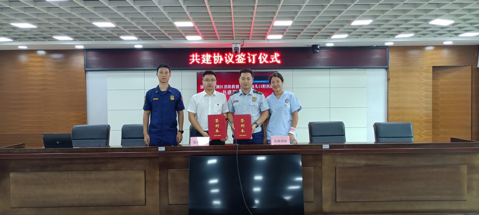 进一步深化交流协作,丰富双拥工作结对共建形式,近日,汕头口腔医院与汕头市龙湖区消防救援大队开展共建签约仪式,进一步深化双方在应急救援、消防安全指导、消防培训、口腔医疗服务等方面的协作配合。