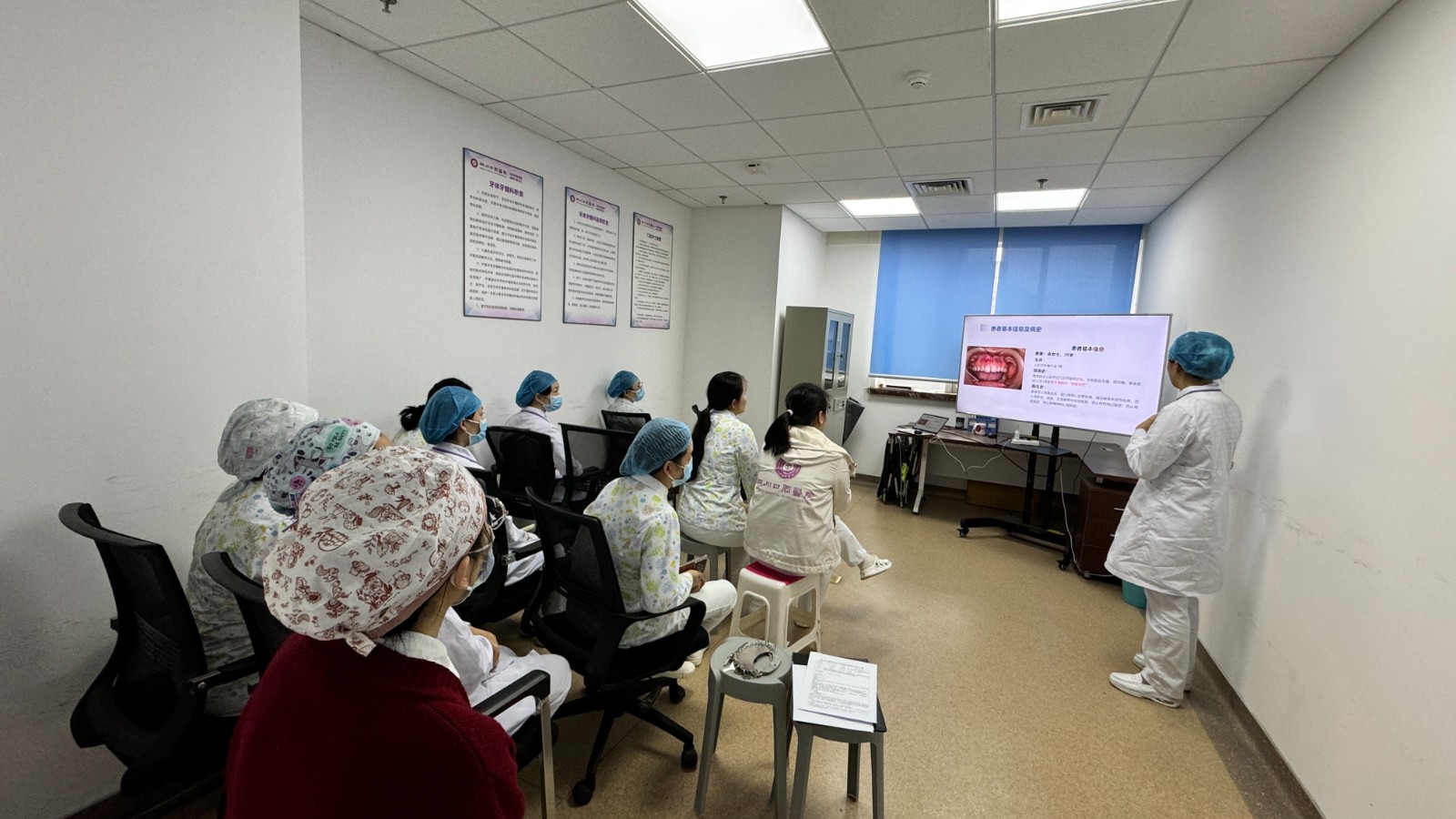 讨论会上,牙体牙髓科护士长龚惠真对意向性牙再植术进行了简明扼要的介绍,为参会人员提供了必要的背景知识。责任护士详细阐述了案例患者的整个护理流程,并分析了患者的病史、病情和治疗方案。参会人员对存在的护理问题、护理的重点和难点进行了现场讨论,就现行护理实践中的不足提出了相应的改进建议,这不仅有助于预防潜在的护理差错,还能提升护理流程的效率与安全性。通过提升整体的护理水平,确保患者得到最佳的护理服务。