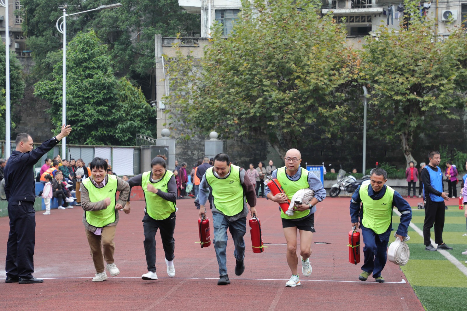 来自嘉阳煤矿、综合服务公司等10个代表队共计80余人参加本次运动会,活动设置了油盆灭火、消防救援服穿戴、灭火器负重竞速、抢救物资等项目,将防火、灭火、逃生自救等消防安全知识与技能实践相结合,让职工在“比拼”中熟练掌握灭火逃生技能。运动员们争分夺秒、团结奋进,展现出了极高的竞技水平和良好的精神风貌。最终,嘉阳煤矿一队、物资供销公司代表队、嘉阳煤矿三队分别获得前三名。
