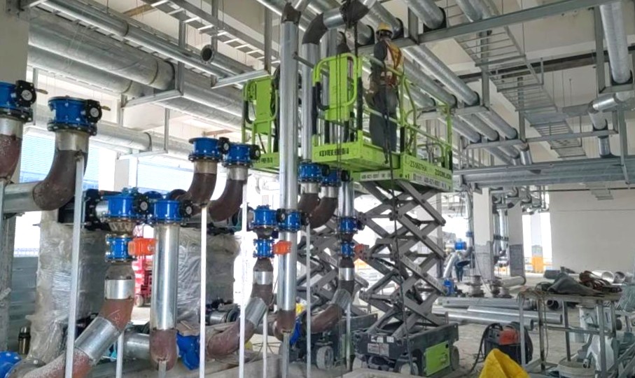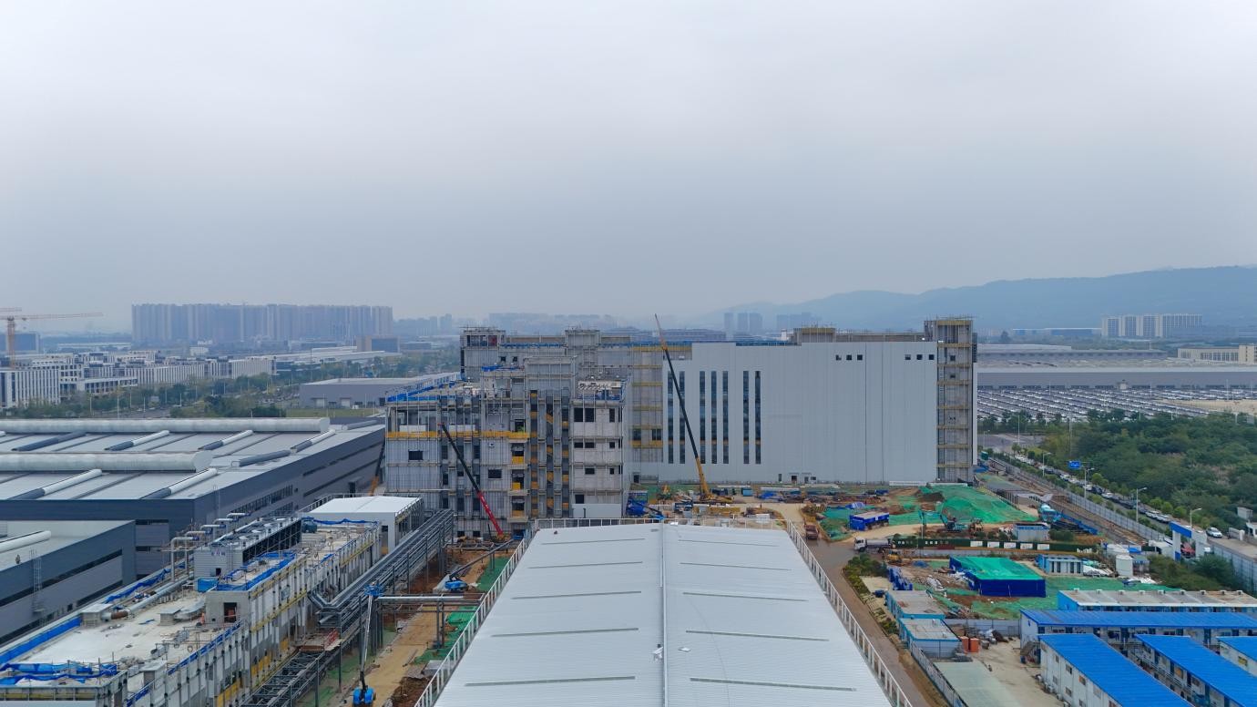 在各楼栋建设现场,机电管道安装、建筑内墙装饰、地面铺设、设备安装调试以及绿化等工作正如火如荼地进行;在外电建设方面,厂区内第一条高压供电线路已按计划完成安装及验收,达到通电条件,为后续施工、设备安装提供更充足的电力保障。