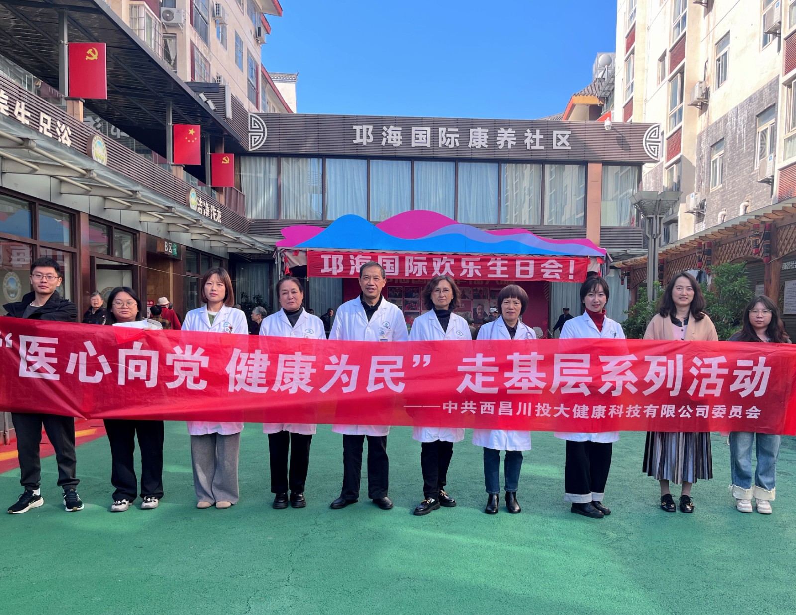 为进一步丰富川投西昌大健康党建品牌内涵,加强党建引领,促进公司与当地企事业单位之间的交流,扩大川投西昌大健康、川投西昌医院影响力,11月19日上午,川投西昌大健康机关党支部联合国药控股凉山医药有限公司党支部赴邛海国际老年社区开展“医心向党 健康为民”健康义诊主题党日活动。