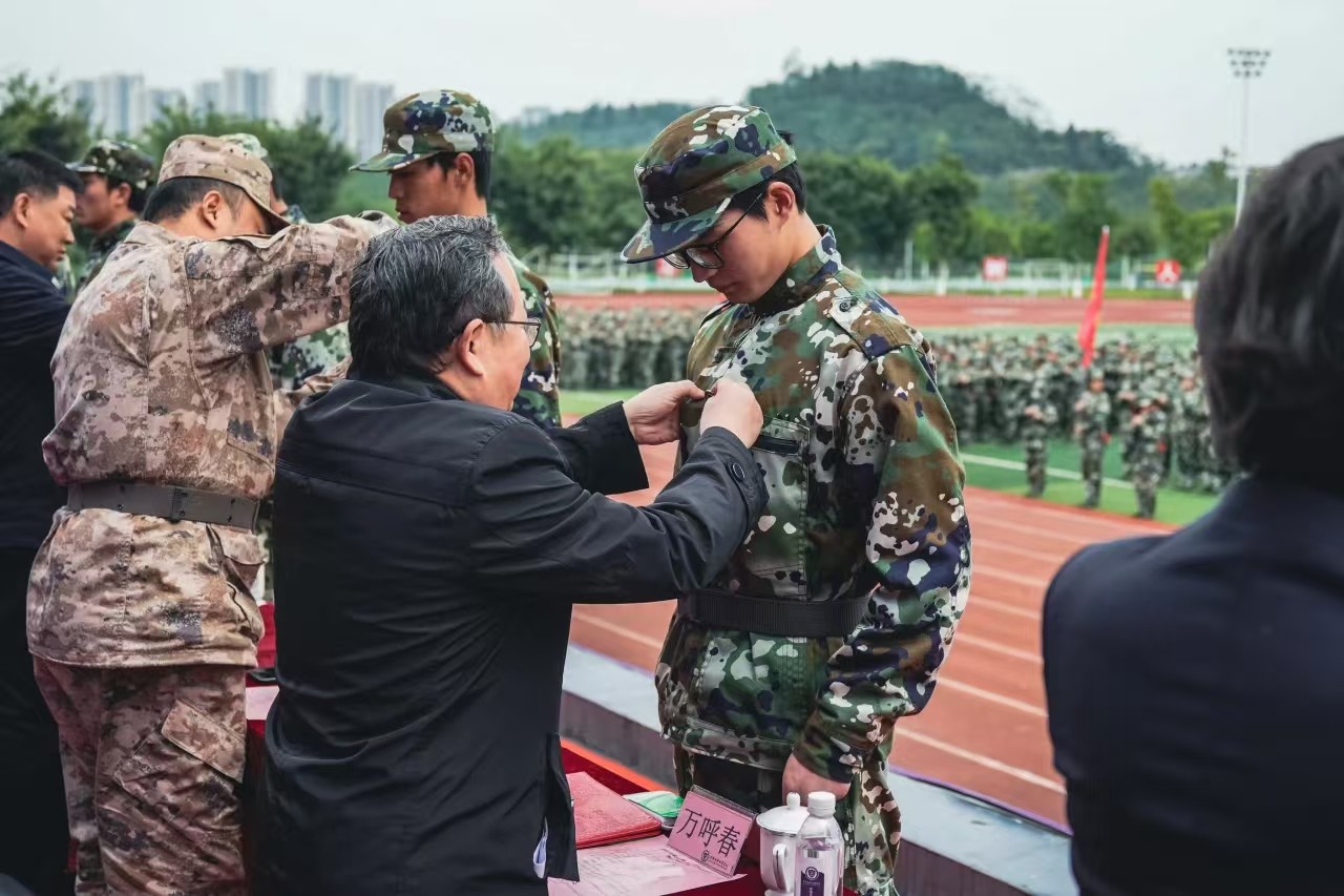 学院表彰了优秀标兵、优秀教官、优秀连队、先进工作者和优秀新生。学院领导为新生代表佩戴校徽。