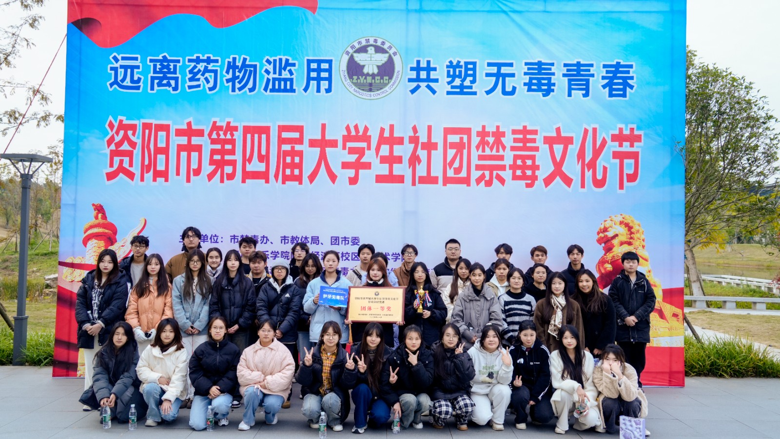 11月27日,由资阳市禁毒办、资阳市教育体育局、共青团资阳市委联合主办的资阳市第四届大学生社团禁毒文化节知识竞赛落下帷幕。现场来自六所学校的6支参赛队伍激烈角逐,资阳口腔职业学院医学系学生莫麟莉、护理系学生李维希、智能医学工程系学生王怡灵组成的“护牙无毒队”以680分总分第一的成绩荣获第一名!