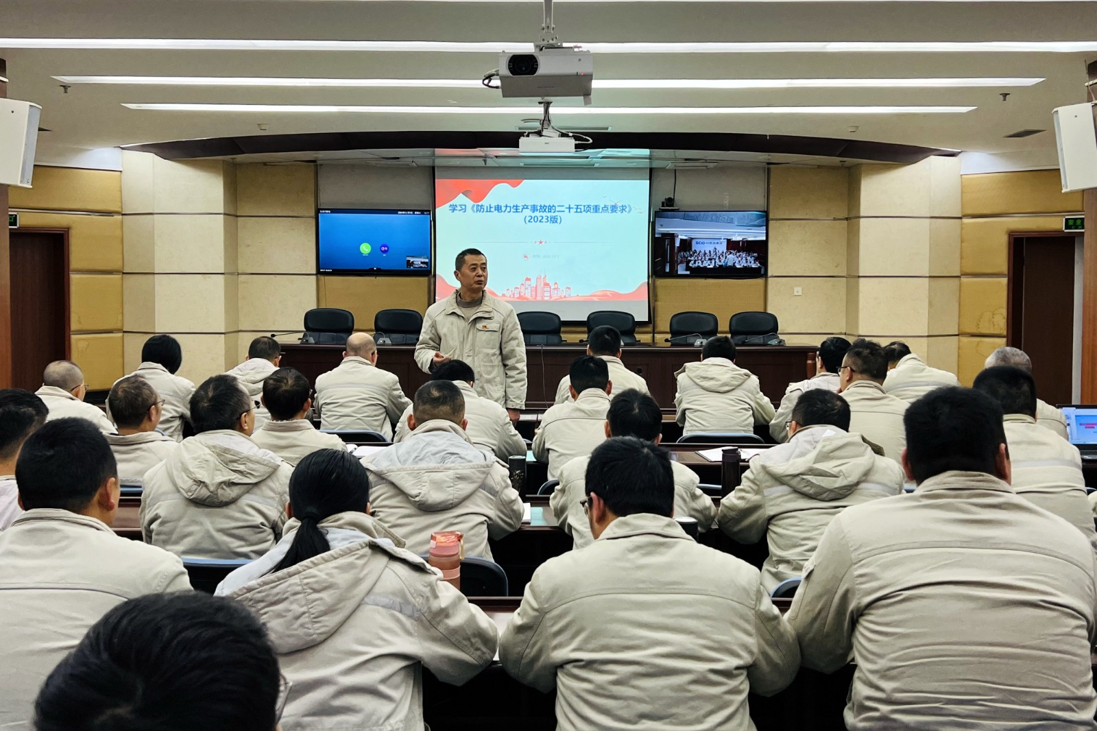 为有效提升员工应急处置能力,提高公司电力安全生产管理水平,12月7日,川投田湾河公司组织召开专题培训会,围绕《防止电力生产事故的二十五项重点要求(2023版)》(以下简称“二十五项重点要求”)和公司应急预案、应急知识进行学习培训。会议由公司党委副书记、总经理、安环职委会主任杨超龙主持,生产部门全体员工参加培训。