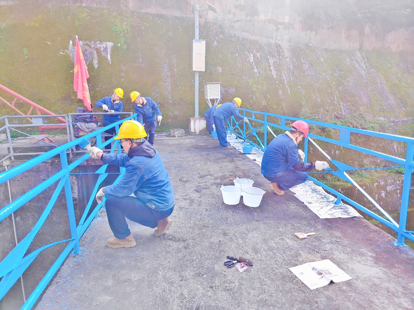 凤鸣湖水库是彭州市一级水源保护地。水库大坝的护栏及金属结构长期暴露于自然环境中,出现了不同程度的锈蚀脱漆现象,既影响大坝整体美观,又对运行安全埋下隐患。为给大坝换上“新衣”,第三支部党员撸起袖子迅速行动起来。