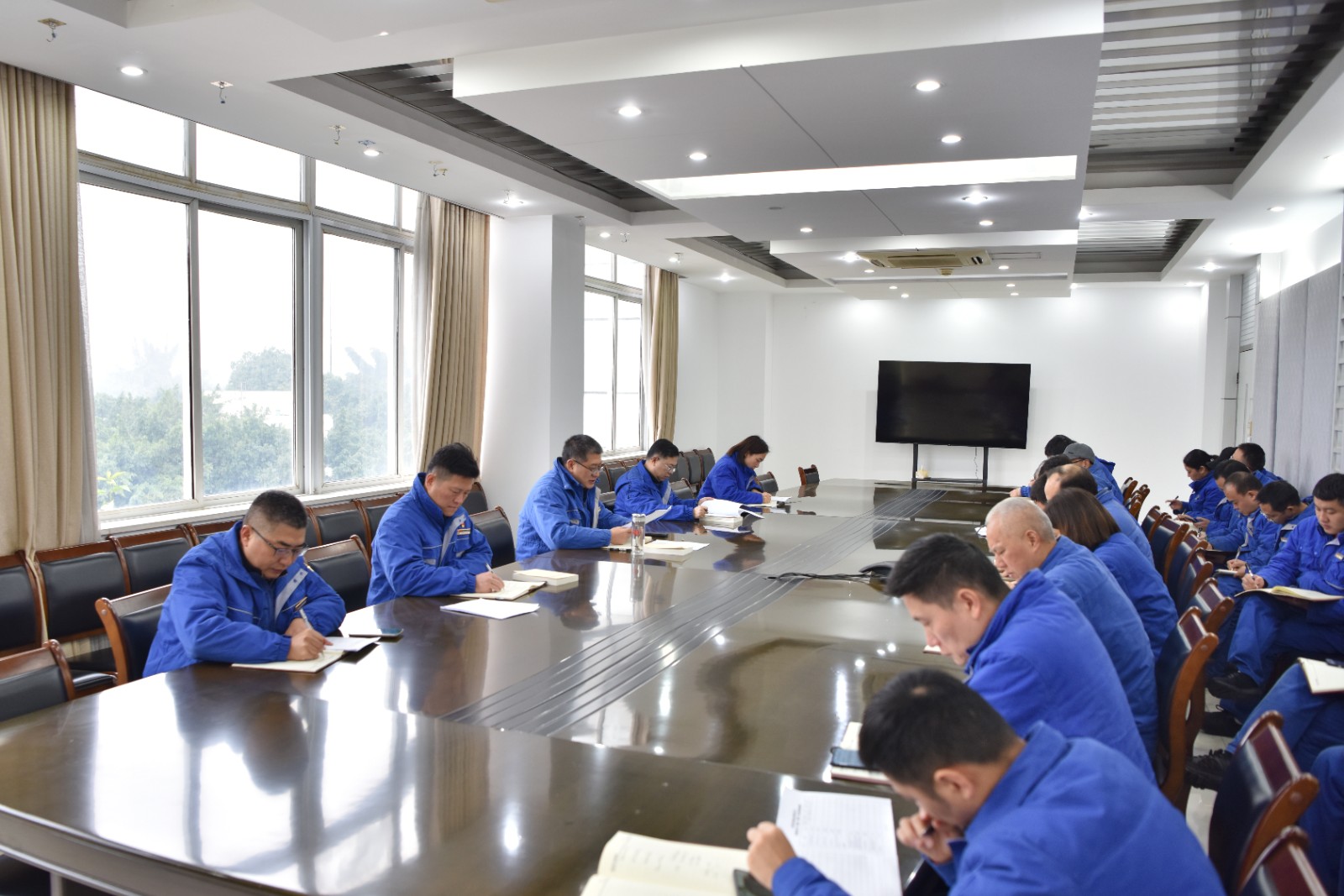 12月18日,川南发电公司党委召开2024年第12次党委理论学习中心组学习(扩大)会,专题学习了国资国企改革发展工作座谈会精神和集团党委安排部署,班子成员围绕“坚定改革决心和发展信心,凝心聚力推动改革行稳致远”作交流发言。会议由党委书记、董事长刘胜金主持,在家领导班子成员及中层管理人员参加学习。