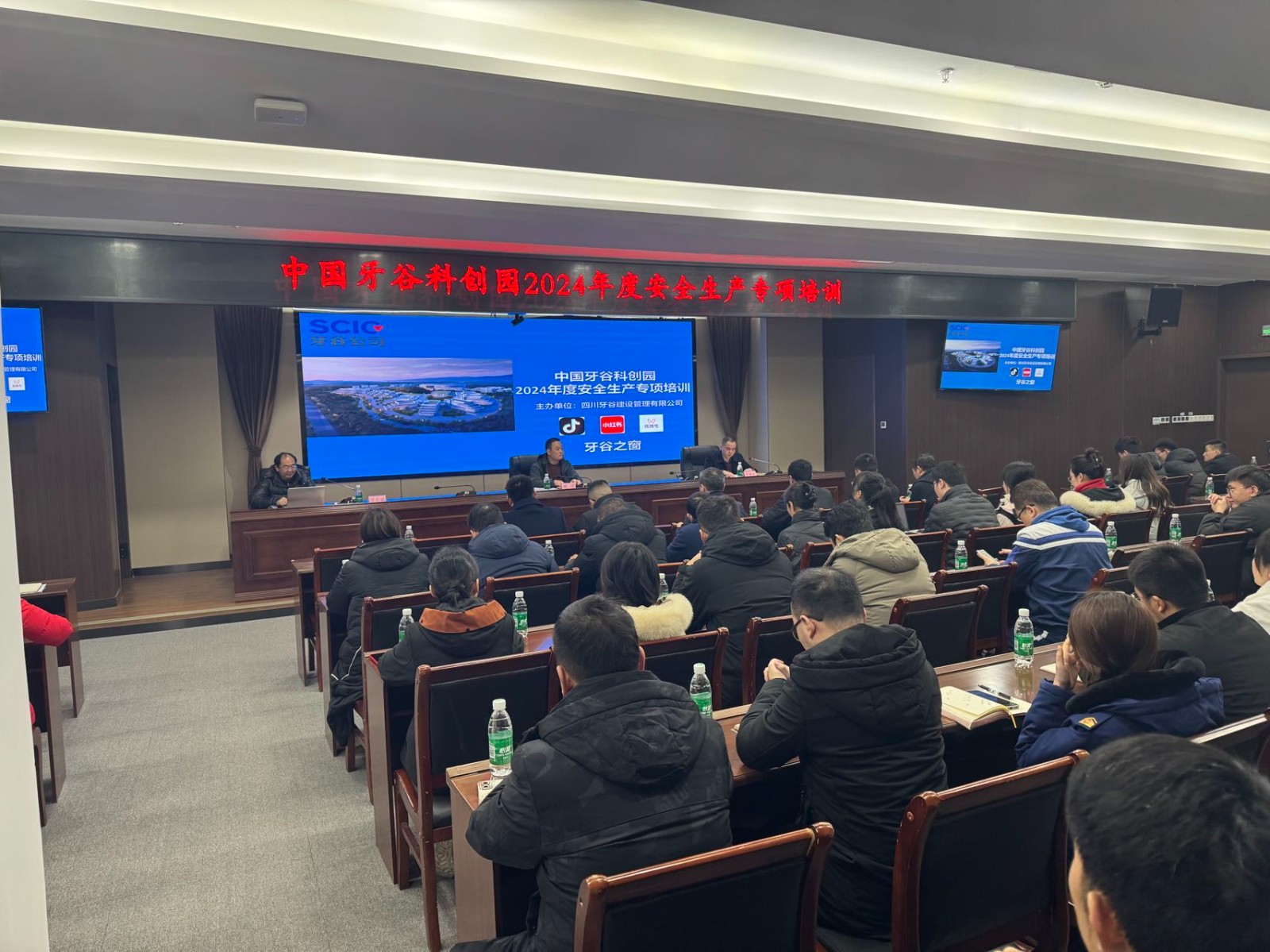 牙谷公司全体员工,园区物业、施工及维保单位相关负责人、资阳市高新区管委会各职能部门代表、园区入驻企业代表等60余人参加培训。