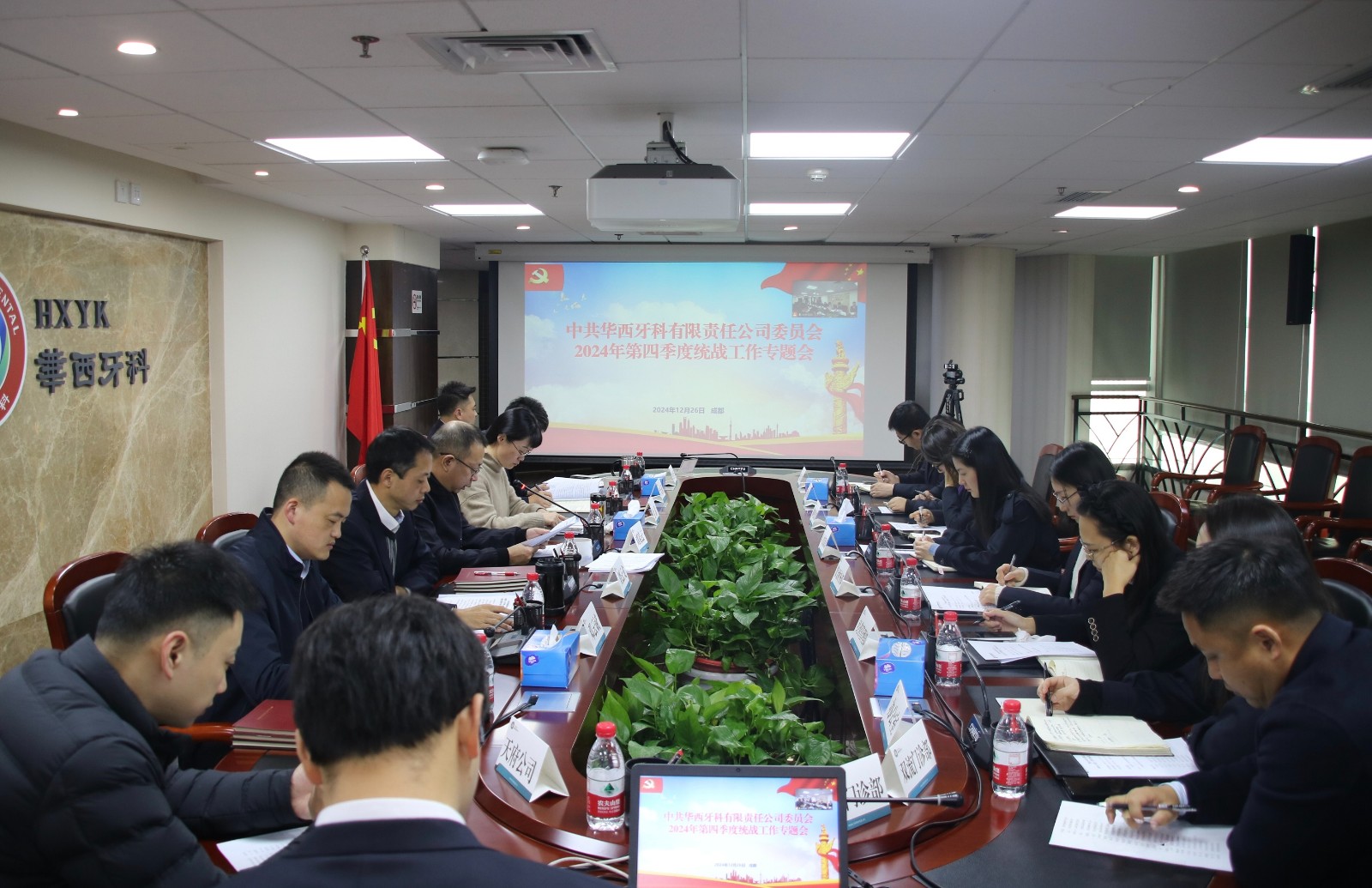 近日,华西牙科党委召开2024年第四季度统战工作专题会。华西牙科党委书记、董事长、总经理刘凌云主持会议并讲话。会议传达学习了习近平总书记在党外人士座谈会上的讲话精神,总结了华西牙科2024年统战工作,研究部署了2025年相关工作。