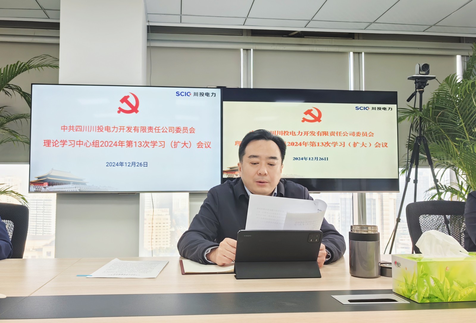 近日,川投能源所属川投电力党委理论学习中心组召开2024年第13次学习(扩大)会议,集中传达学习中央经济工作会议精神和12月23日省委经济工作会议精神,研究贯彻落实意见。川投电力党委书记、董事长杨涛主持会议。