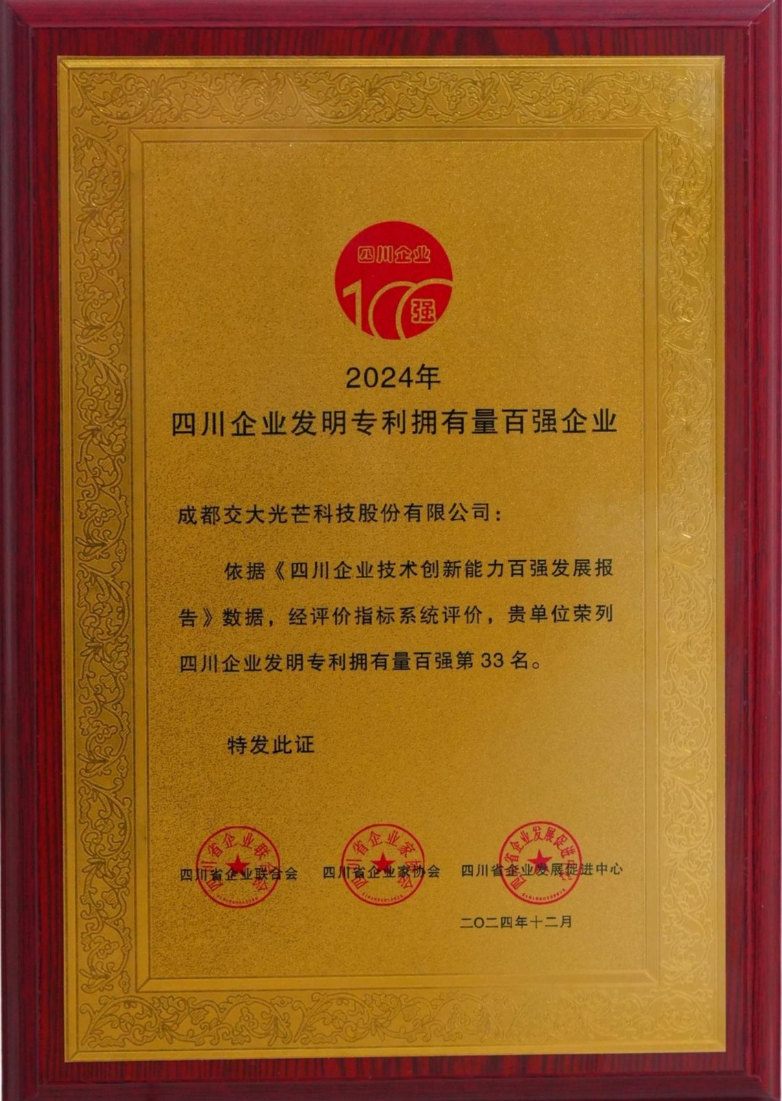 近日,以“技术创新荣耀四川”为主题的2024年四川企业技术创新发展大会在成都召开,本次大会由四川省企业联合会、四川省企业家协会和成都市金牛区人民政府联合主办。大会发布《2024四川企业技术创新发展能力百强发展报告》,并公布49名企业技术创新突出贡献人物。川投能源所属交大光芒荣获四川企业技术创新能力百强企业(第42位)和四川企业发明专利拥有量百强企业(第33位),公司首席专家、副总经理陈奇志荣获“2024年四川企业技术创新突出贡献人物”称号。交大光芒已连续三年获评“双百强”企业。