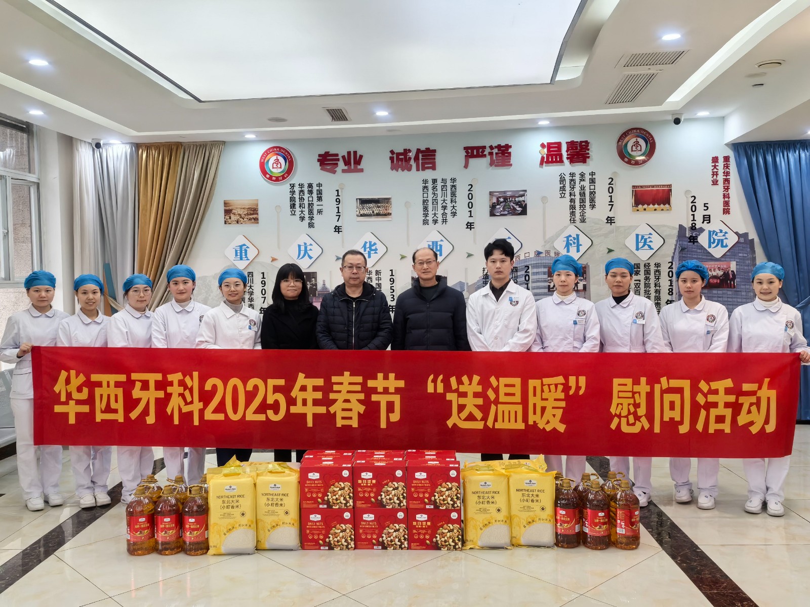 1月14日,华西牙科党委书记、董事长、总经理刘凌云带队赴重庆华西牙科医院开展安全检查暨春节“送温暖”慰问活动。重庆华西牙科医院党支部书记、董事长叶曙光陪同。