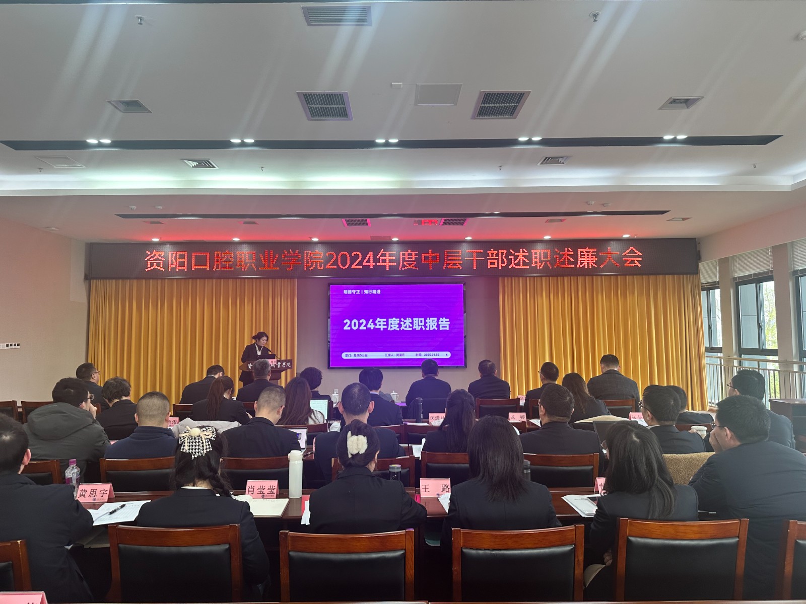 为进一步提升管理人员工作凝聚力、执行力,持续营造比学赶超浓厚氛围,近日,资阳口腔职业学院召开2024年度中层管理人员述职述廉大会。