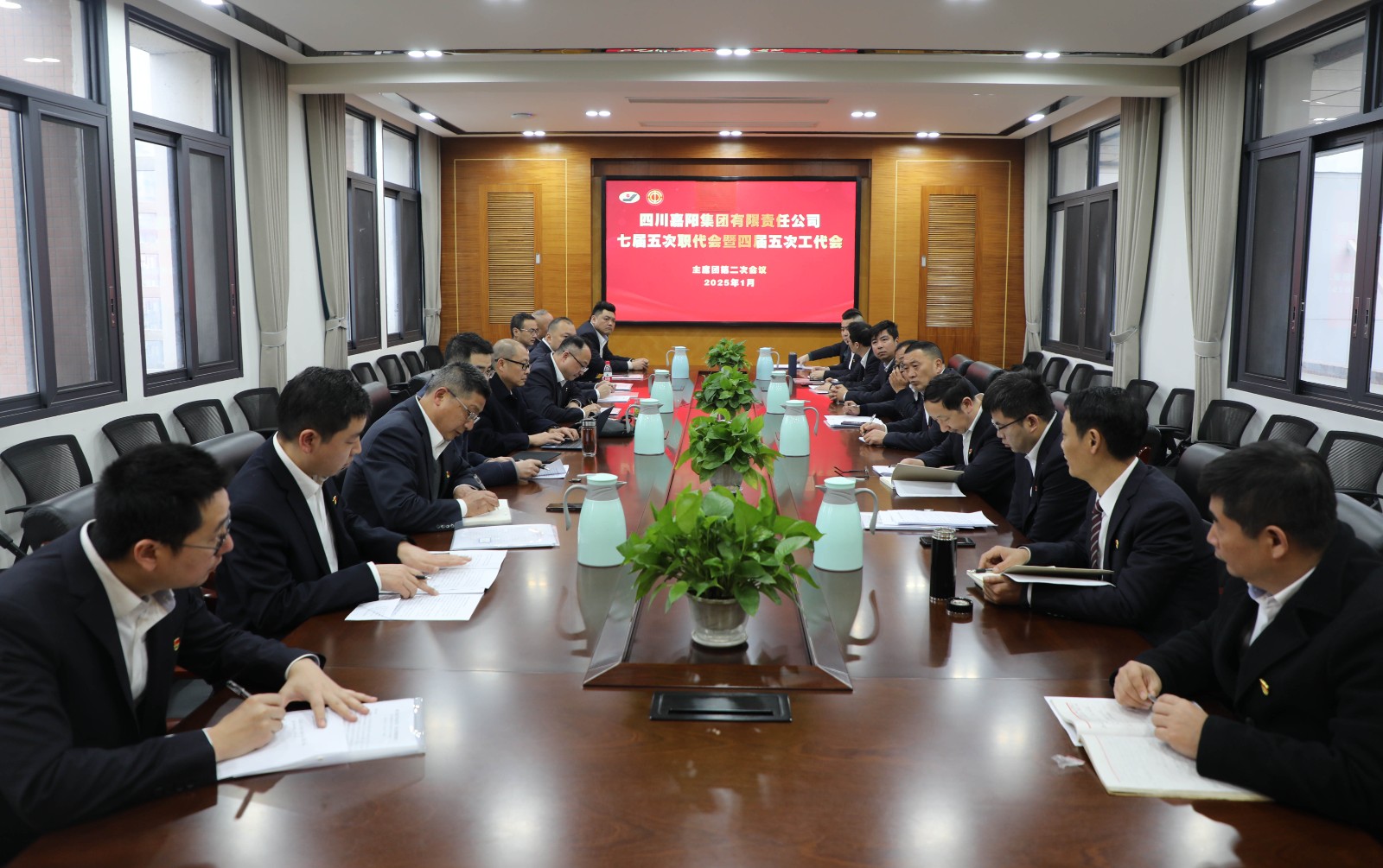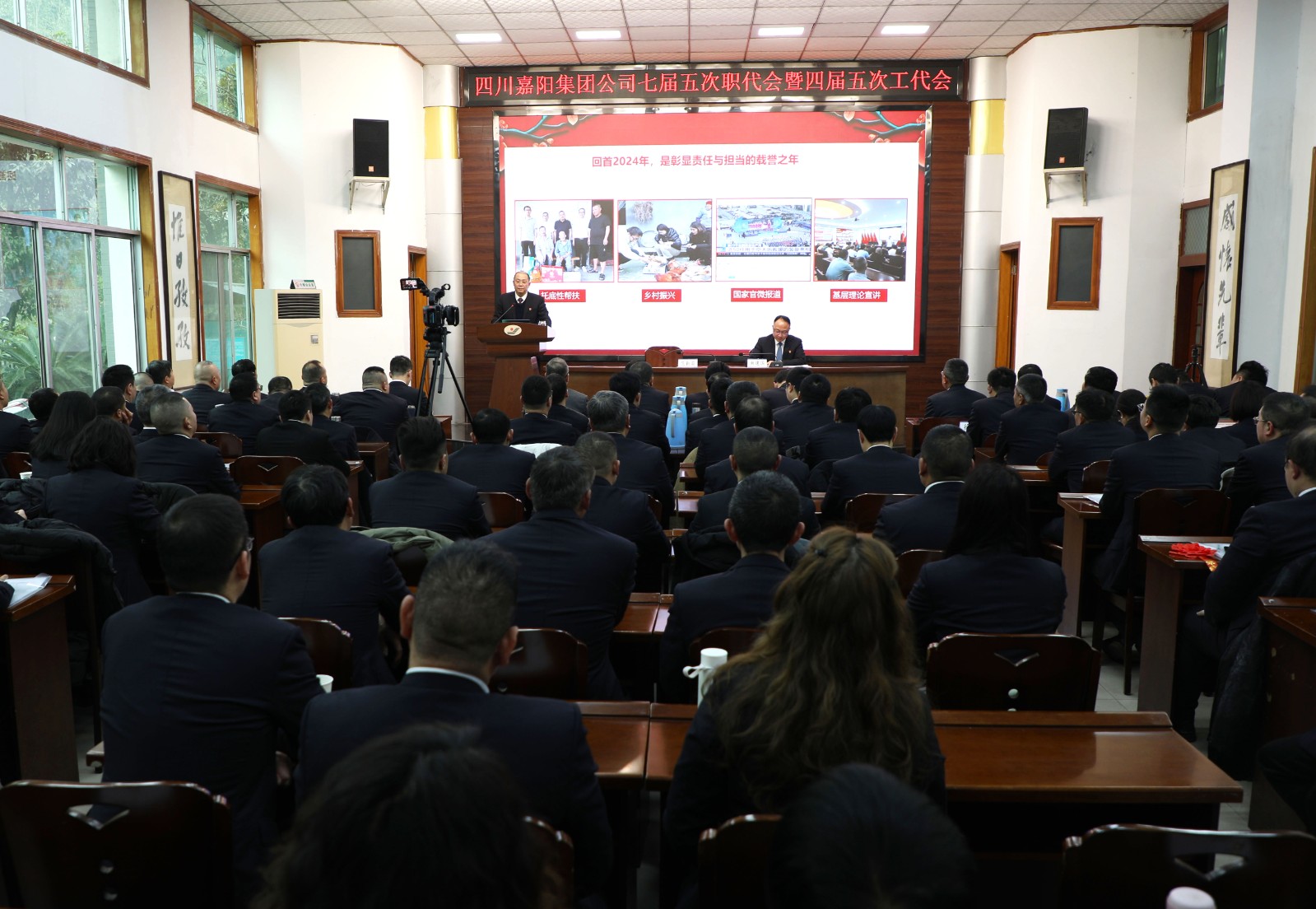 1月21日、22日,嘉阳集团七届五次职代会暨四届五次工代会在庄重而热烈的氛围中召开。大会全面回顾了2024年工作,明确2025年总体工作思路、目标任务和重点工作,听取、审议、通过了2024年行政工作报告、工会工作报告以及相关计划、方案。112名职工代表和工会会员代表为企业的高质量发展出谋划策,奏响团结奋进的新篇章。