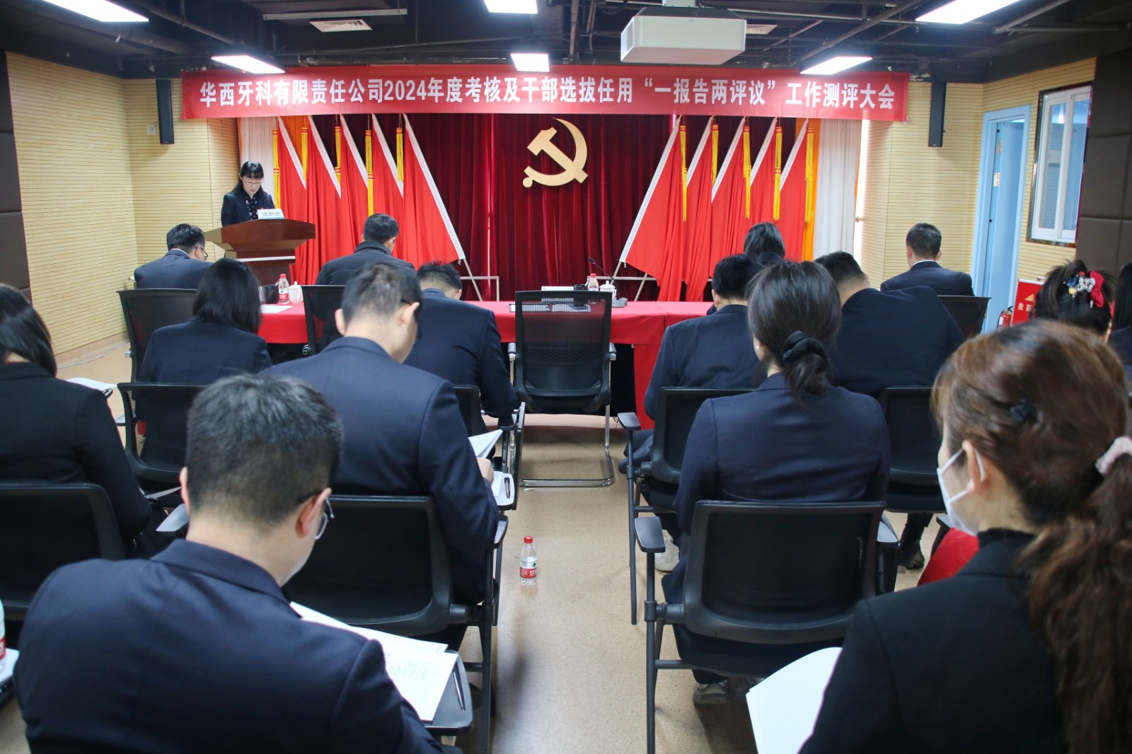 1月20日,华西牙科召开2024年度领导干部考核及干部选拔任用“一报告两评议”工作测评会。华西牙科领导班子成员、外部董事代表、中层正副职、所属公司班子成员代表、员工代表共计31人参会。会议由华西牙科党委副书记、工会主席金晶主持。