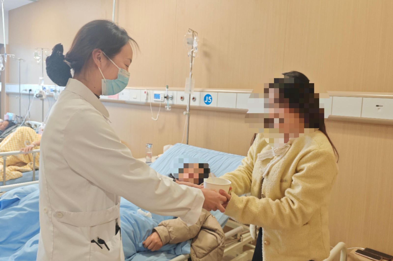 活动当天,医院食堂内欢声笑语不断。医护人员化身“巧手师傅”,揉面、调馅、搓圆,将传统节日的仪式感融入每一个步骤。随着元宵出锅,各科室代表有序领取,并分送至门诊、病房及行政区域。在病房内,护士将元宵送至患者床前,轻声道:“元宵节快乐!吃了这碗元宵,愿您早日康复。”患者张阿姨接过碗:“住院还能吃到你们亲手包的元宵,心里真暖!”在病房内等待的患者家属刘大哥接过医护人员递去的元宵说:“大年十五在医院过,本来有点心情低落,没想到你们这么周到!”这场跨越岗位与病房的暖心互动,让医患情谊在节日氛围中悄然升温。