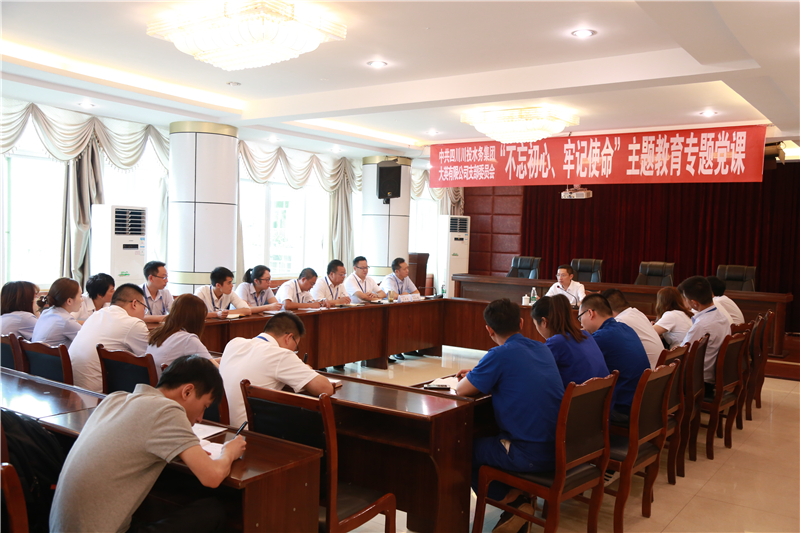 8月9日,川投水务党委副书记、总经理邓锐在大英水司以“不忘初心,履职尽责勇担当;牢记使命,助力发展敢作为”为题讲主题教育党课。川投水务大英水司全体党员干部参加了党课学习。