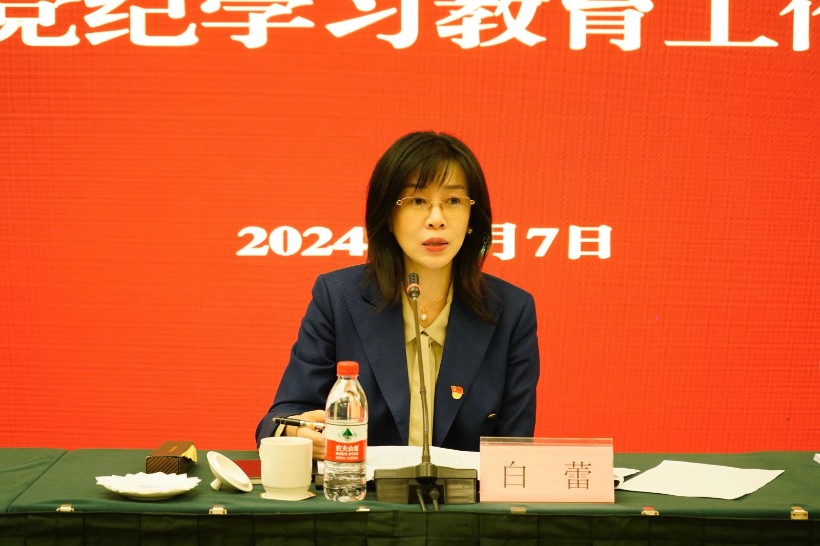 白蕾指出,在全党开展党纪学习教育,是以习近平同志为核心的党中央为加强党的纪律建设、推动全面从严治党向纵深发展作出的重大部署。要把开展党纪学习教育作为一项重要政治任务,精心组织实施开展,加强对党员干部的监督检查、督促落实,严肃查处违反党纪政纪的行为,切实维护党的纪律的严肃性和权威性。