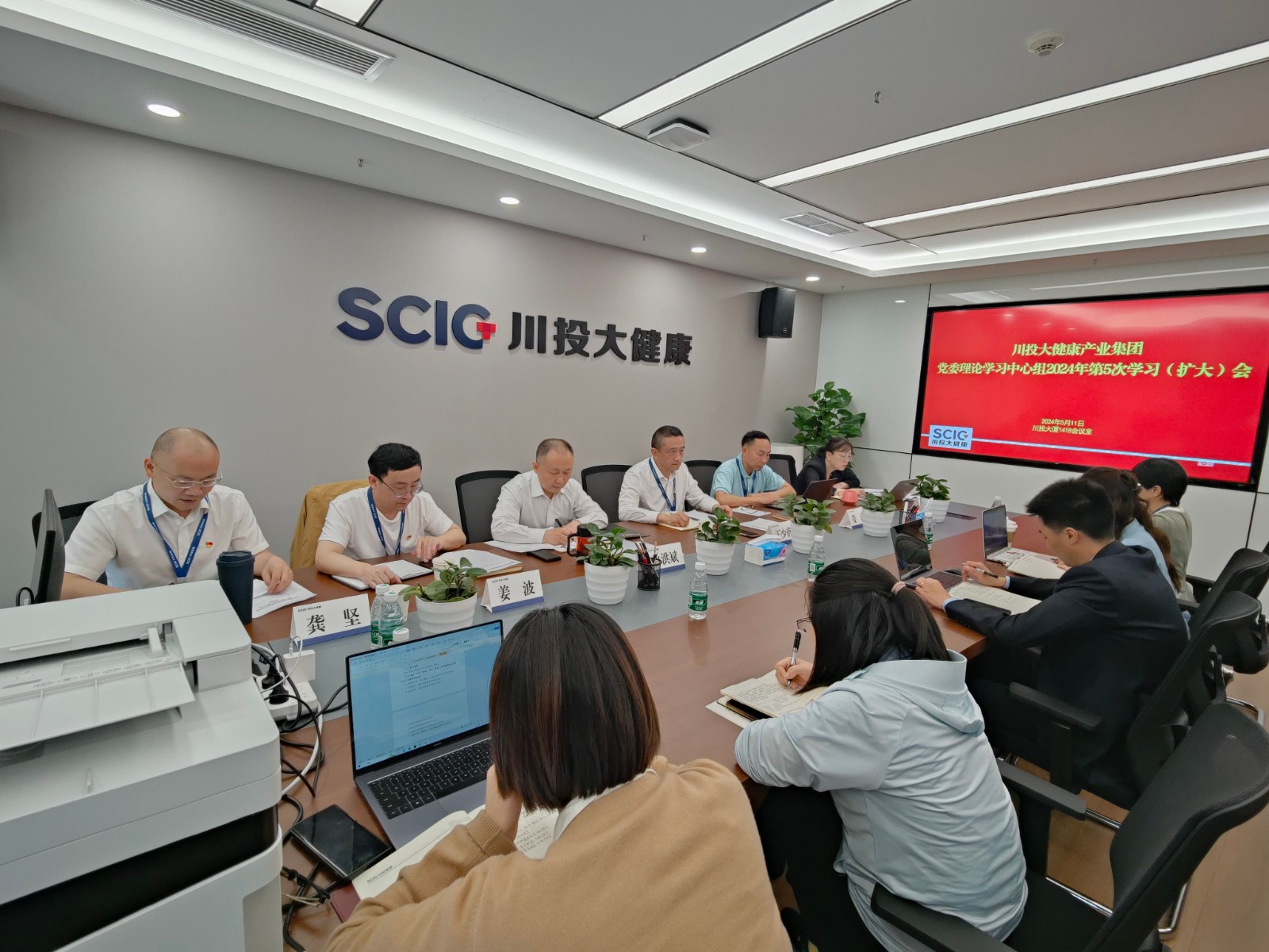 5月11日,川投大健康产业集团召开党委理论学习中心组第5次学习(扩大)会,开展党纪学习教育专题学习,公司党委理论学习中心组成员围绕“学纪、知纪、明纪、守纪,始终做到忠诚干净担当”深入开展交流研讨。