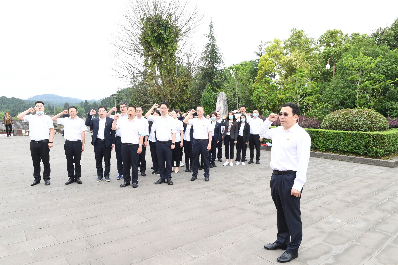 在陈毅元帅雕像前,王怀林同志带领全体党员面向党旗,紧握右拳,铿锵有力、庄严神圣地重温入党誓词,追忆了入党时对党和人民许下的庄严承诺。
