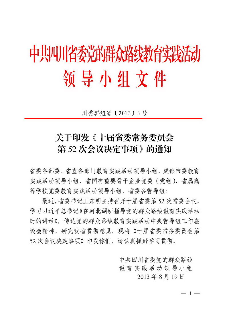 四川省委关于印发《十届省委常务委员会第52次会议决定事项》的通知