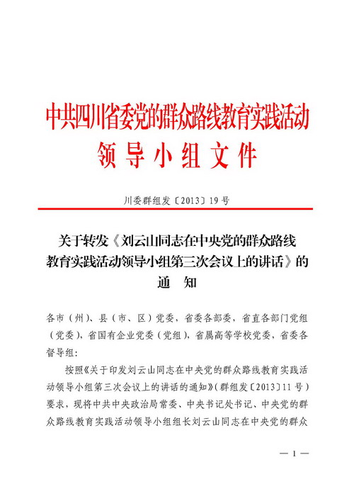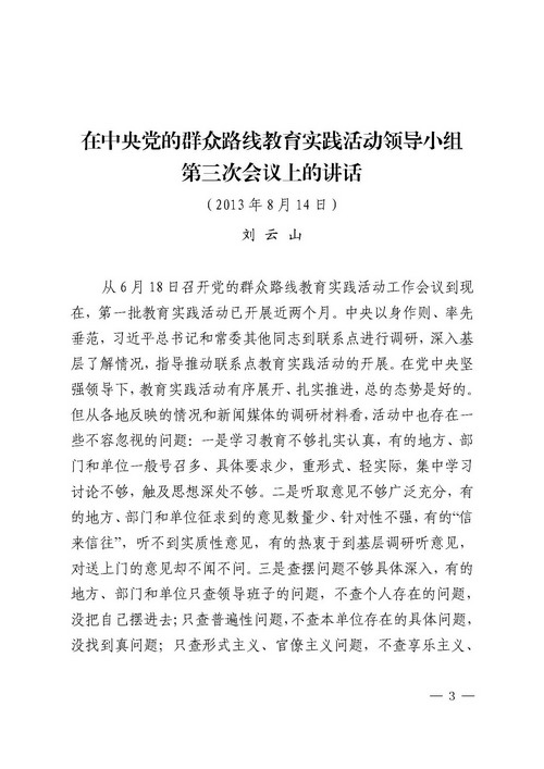 关于转发《刘云山同志在中央党的群众路线教育实践活动领导小组第三次会议上的讲话》的通知