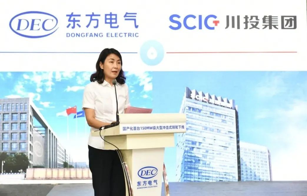 川投田湾河公司党委书记、董事长李红介绍了田湾河公司与东方电机冲击式机组国产化研制合作情况。