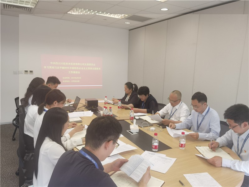 6月2日,川投资本党支部召开学习贯彻习近平新时代中国特色社会主义思想主题教育工作推进会,公司党支部书记、董事、总经理王静轶,副总经理郑险峰、付强,财务总监林玲及中层干部、全体党员参加会议。