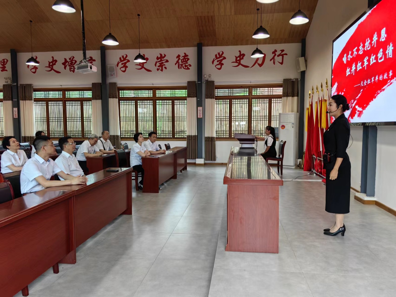 结合主题教育,支部精心设置了研学路线和内容,采用理论学习和实地研学相结合方式,全体党员认真学习“牢牢把握主题教育的总要求”微视频,面向党旗庄严宣誓、重温入党誓词,现场聆听“红军井”特色微党课;先后参观了红军纪念馆中的红军长征天全展厅、徙都往事等展厅,红军村中红四方面军总部、红军总政治部、红军总医院等革命旧址,通过现场教学、历史图片、文献资料等,了解了红军在天全的重大战斗和历史事件,追忆党的伟大革命历史,感受党创新理论的磅礴真理,进一步凝聚思想共识、激发董监力量。
