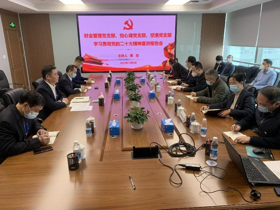 12月9日,为深入学习宣传贯彻党的二十大精神,集团公司财务总监黄劲赴财金管理党支部、怡心湖党支部和空港党支部宣讲党的二十大精神;会议由怡心湖党支部书记龚帝伟主持。