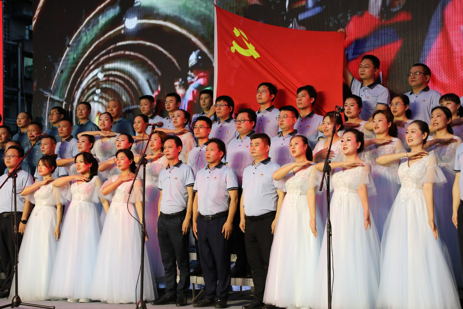 2个多小时的演出中,嘉阳煤矿、福溪粉煤灰公司、机电制造维修分公司、川投峨旅、物资供销公司等不同单位,分别合唱表演了《领航》《我宣誓》《星火燎原》等歌曲,公司党委结对联建单位川投大健康带来了歌曲《灯火里的中国》,驻矿单位犍为县芭石煤炭独立工矿区医院合唱了《我和我的祖国》,歌声时而雄壮豪迈,时而柔情满怀,表达了当代矿工跟党走、颂党恩的美好心愿。
